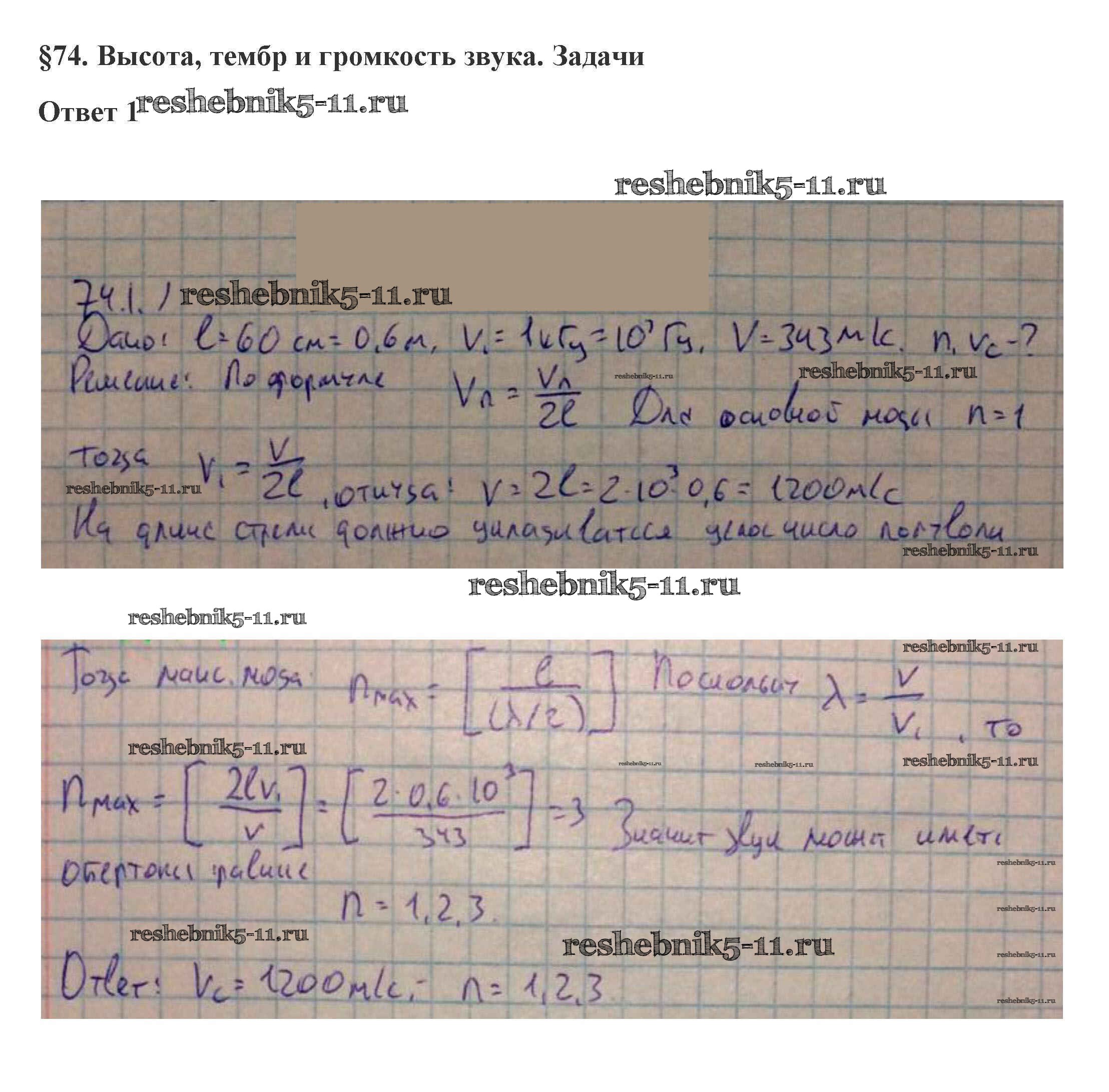 Готовая домашняя работа с ответами по Физике за 10 класс Касьянов Учебник Дрофа 2018 ФГОС - 74. Высота, тембр и громкость звука 1