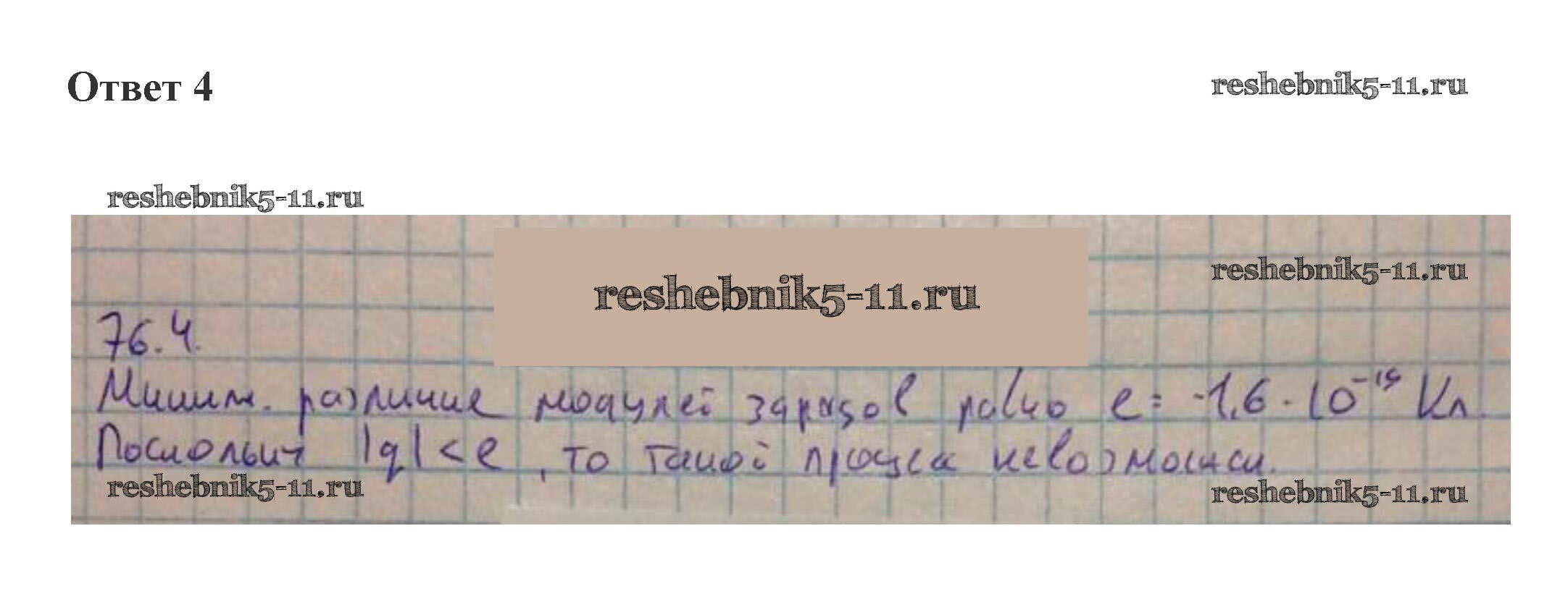 Готовая домашняя работа с ответами по Физике за 10 класс Касьянов Учебник Дрофа 2018 ФГОС - 76. Электризация тел. Закон сохранения заряда 4