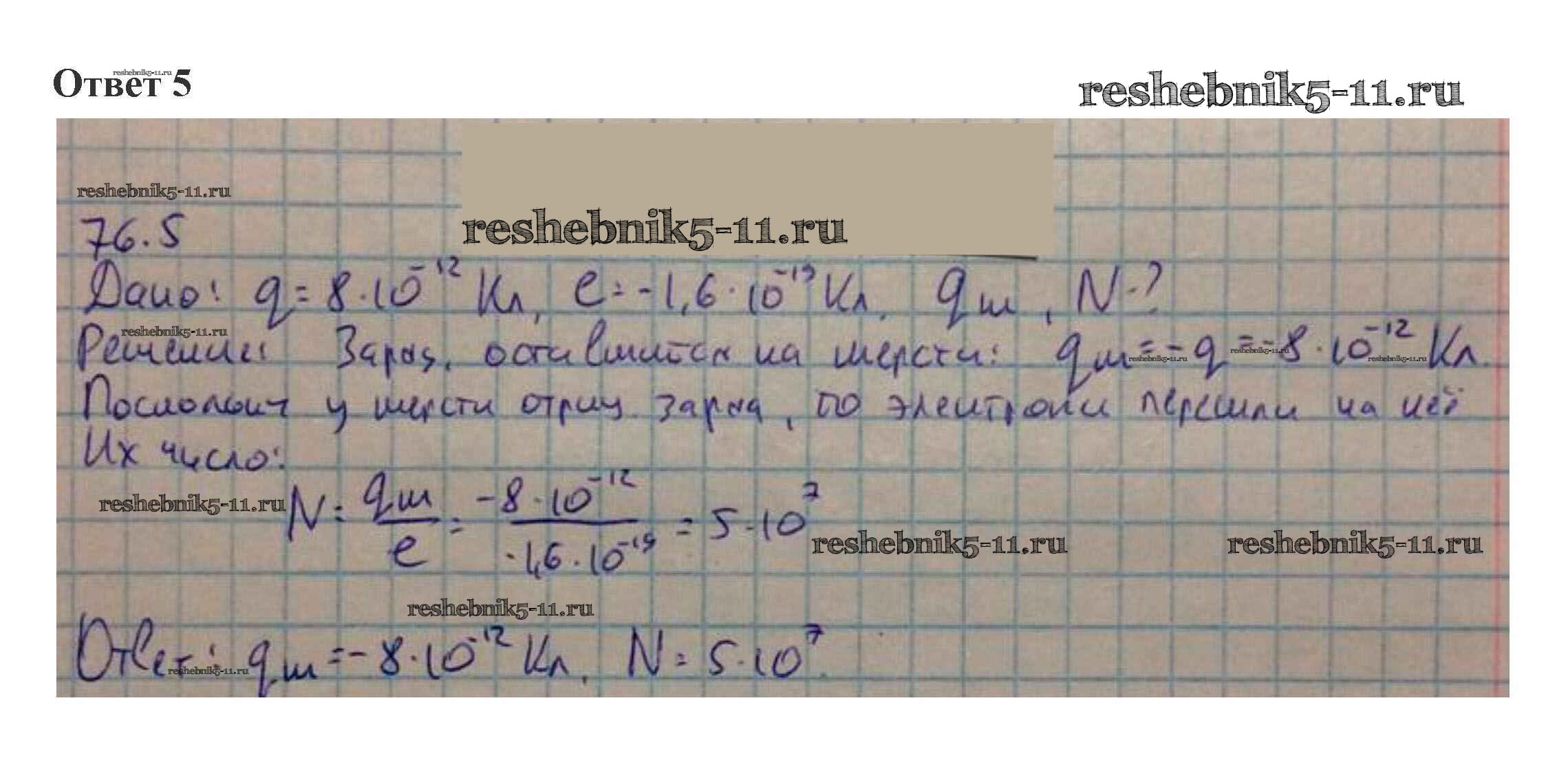 Готовая домашняя работа с ответами по Физике за 10 класс Касьянов Учебник Дрофа 2018 ФГОС - 76. Электризация тел. Закон сохранения заряда 5