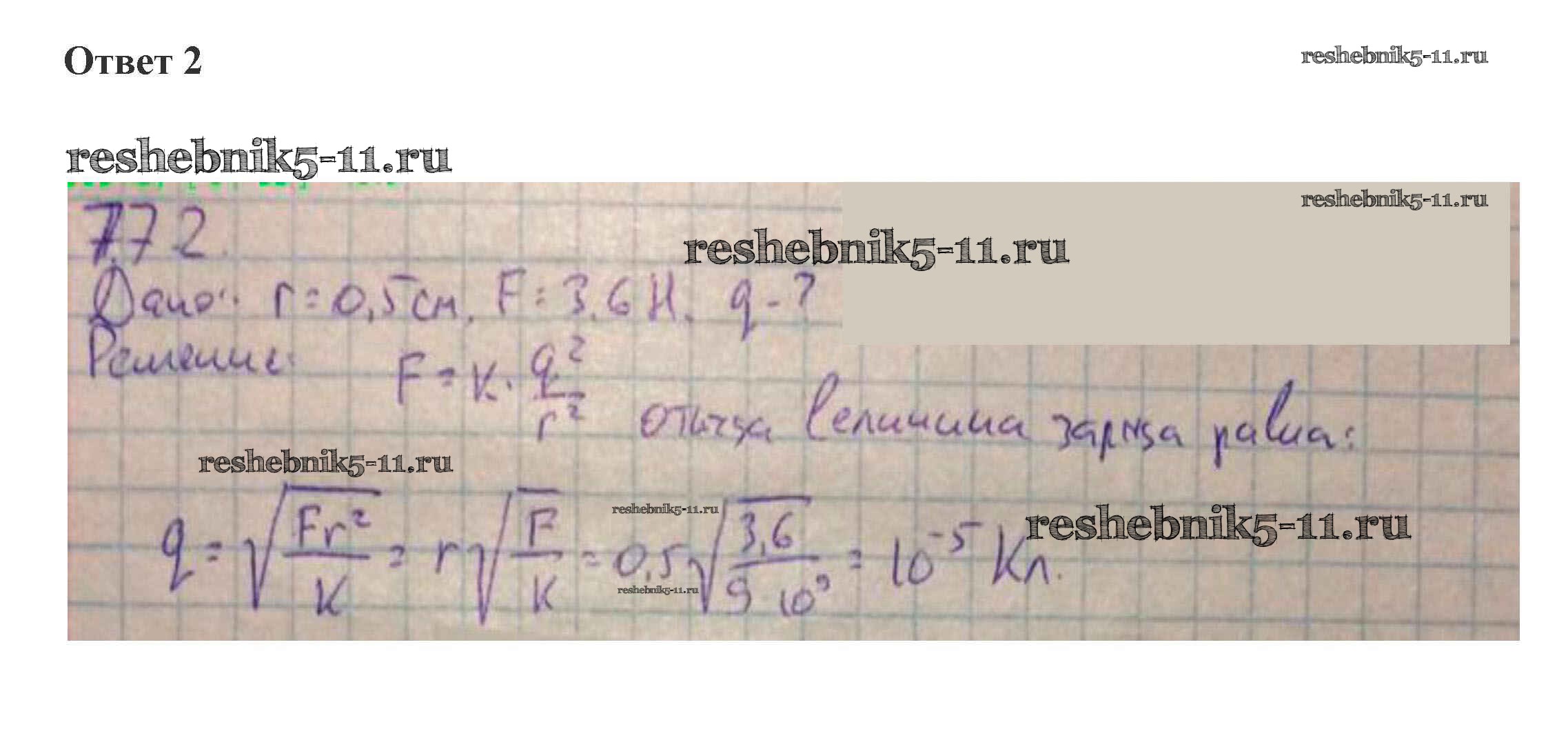 Готовая домашняя работа с ответами по Физике за 10 класс Касьянов Учебник Дрофа 2018 ФГОС - 77. Закон Кулона 2