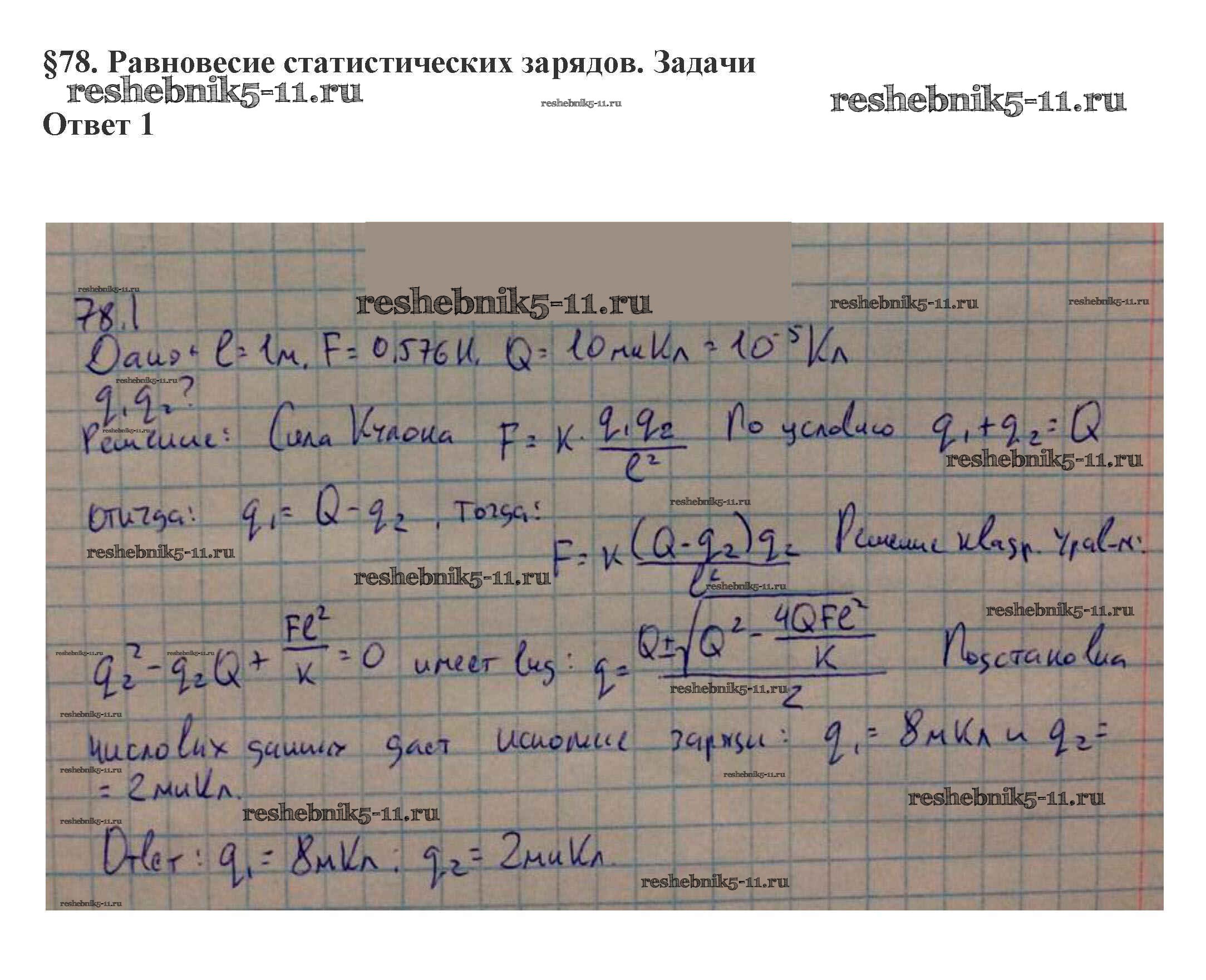 Готовая домашняя работа с ответами по Физике за 10 класс Касьянов Учебник Дрофа 2018 ФГОС - 78. Равновесие статистических зарядов 1