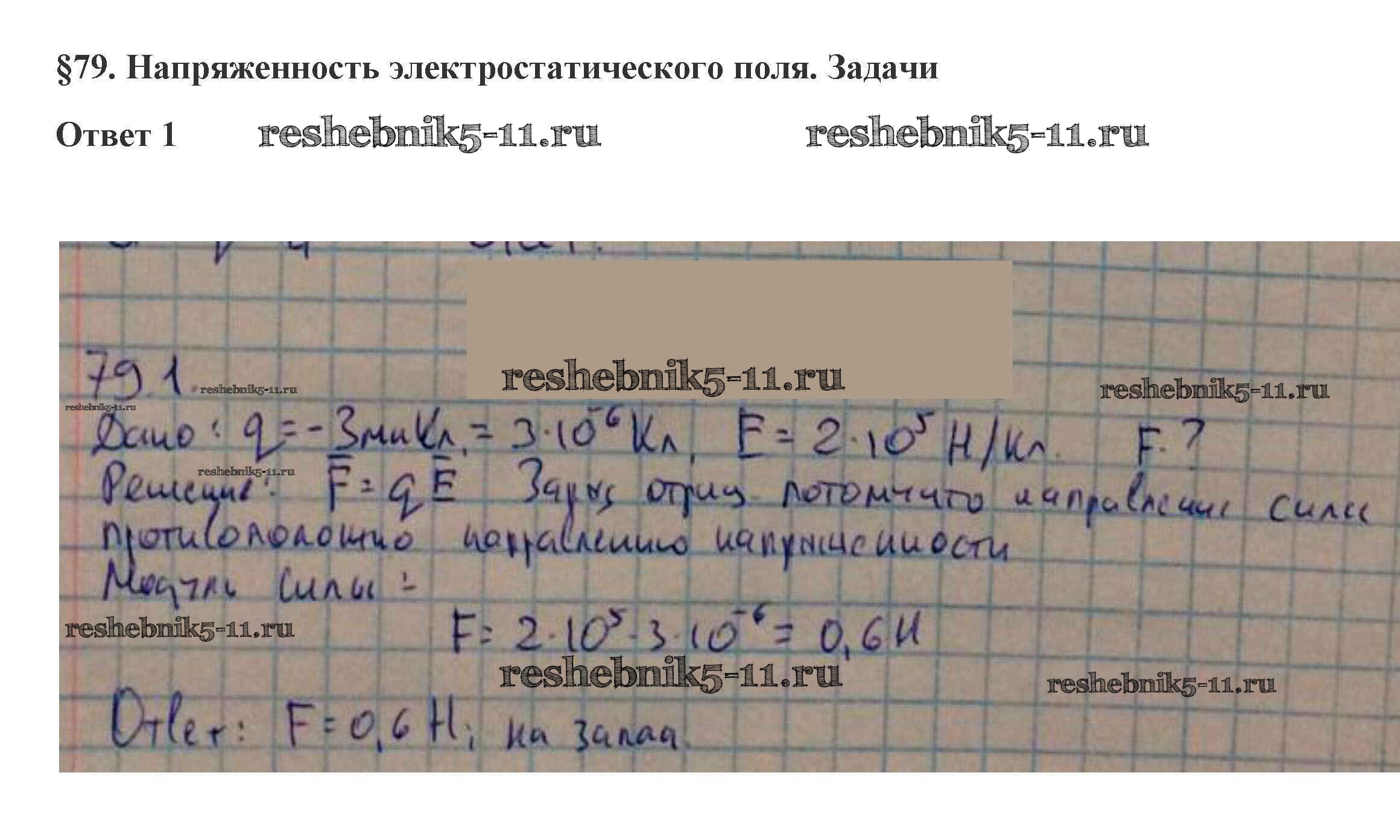 Готовая домашняя работа с ответами по Физике за 10 класс Касьянов Учебник Дрофа 2018 ФГОС - 79. Напряженность электростатического поля 1