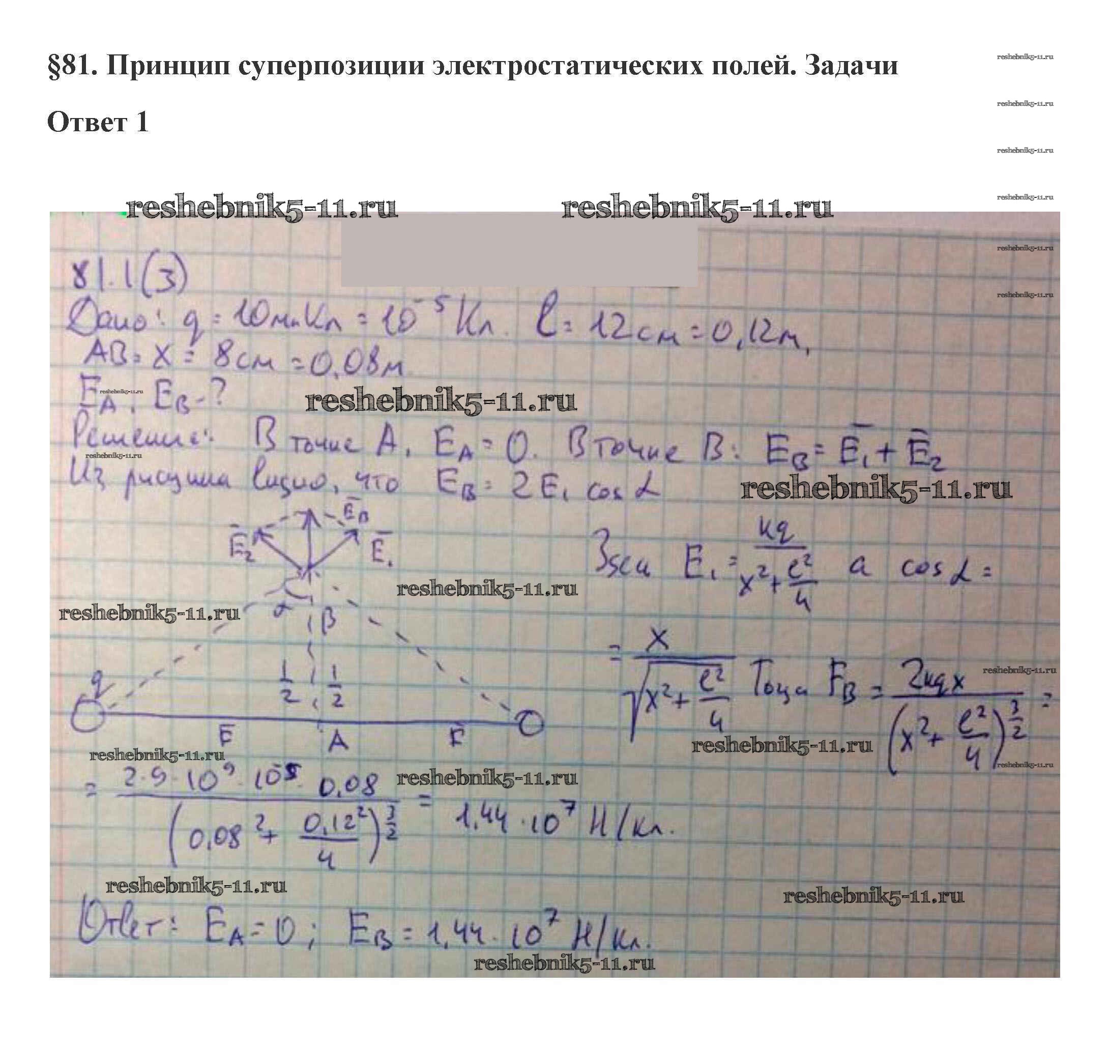 Готовая домашняя работа с ответами по Физике за 10 класс Касьянов Учебник Дрофа 2018 ФГОС - 81. Принцип суперпозиции электростатических полей 1