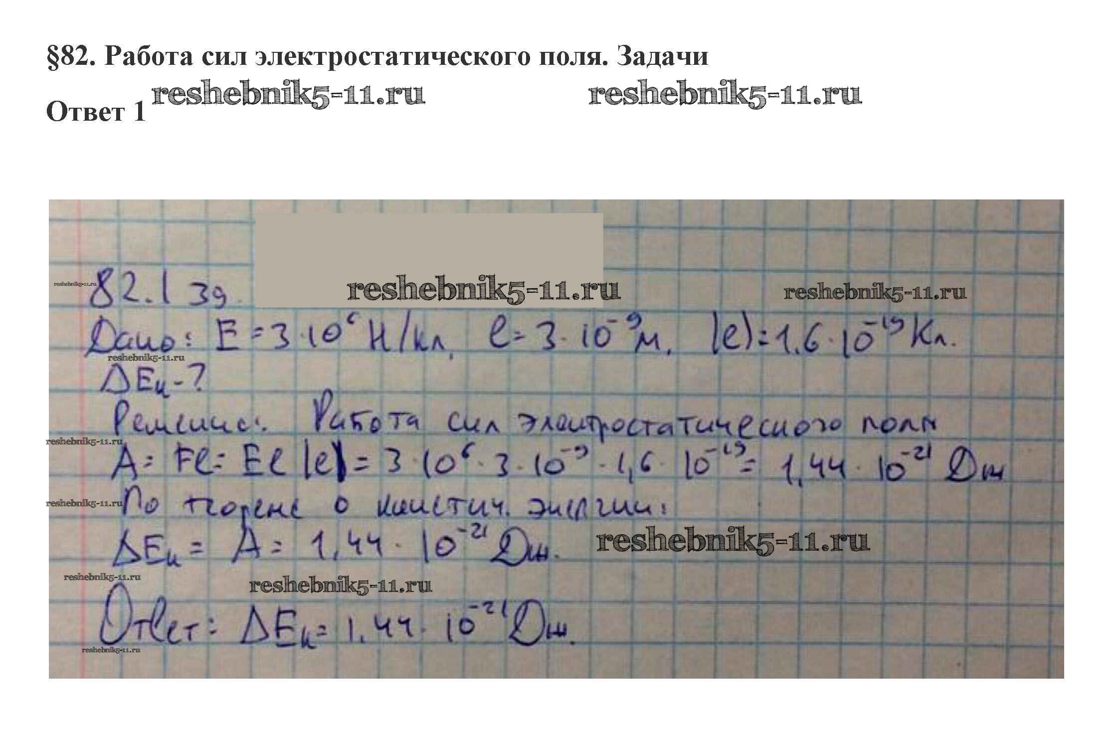 Готовая домашняя работа с ответами по Физике за 10 класс Касьянов Учебник Дрофа 2018 ФГОС - 82. Работа сил электростатического поля 1