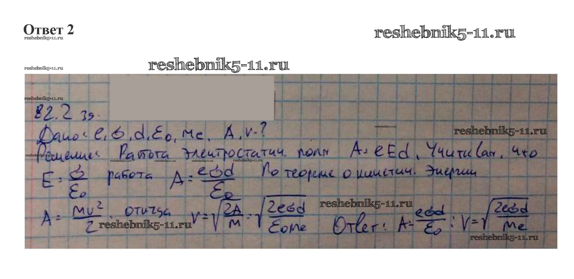 Готовая домашняя работа с ответами по Физике за 10 класс Касьянов Учебник Дрофа 2018 ФГОС - 82. Работа сил электростатического поля 2