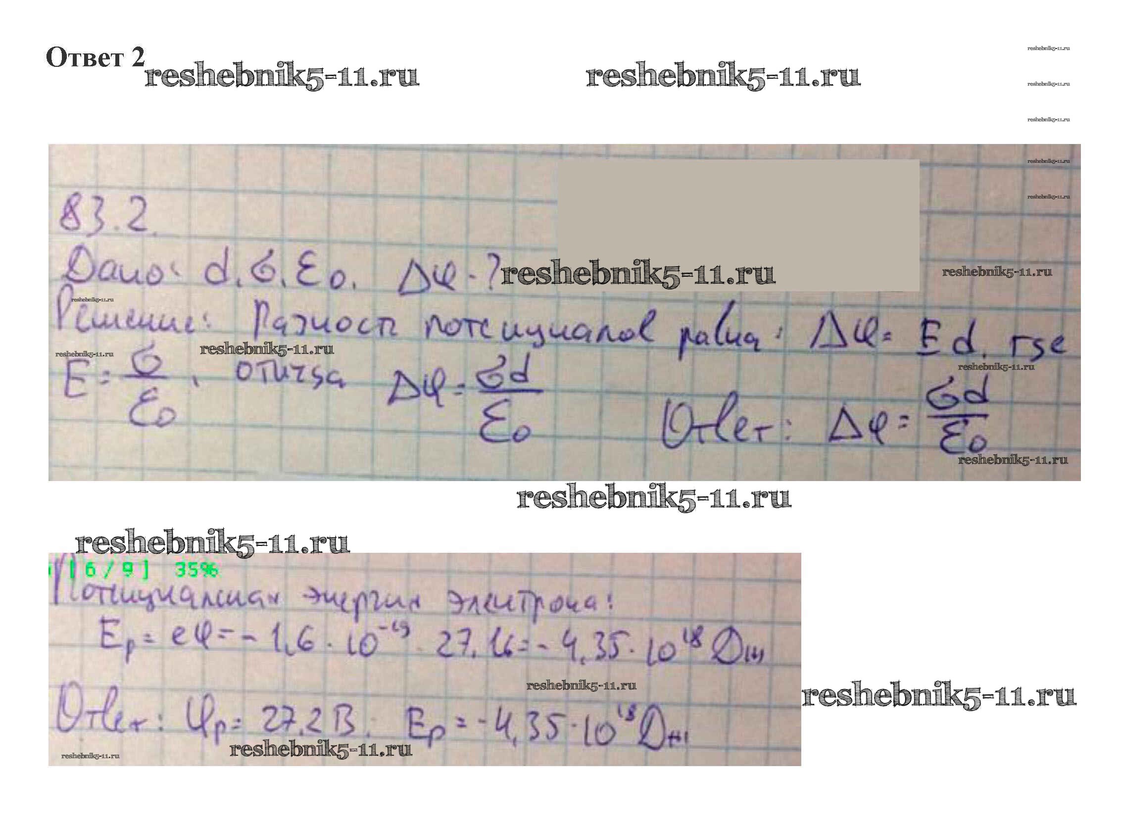 Готовая домашняя работа с ответами по Физике за 10 класс Касьянов Учебник Дрофа 2018 ФГОС - 83. Потенциал электростатического поля 2