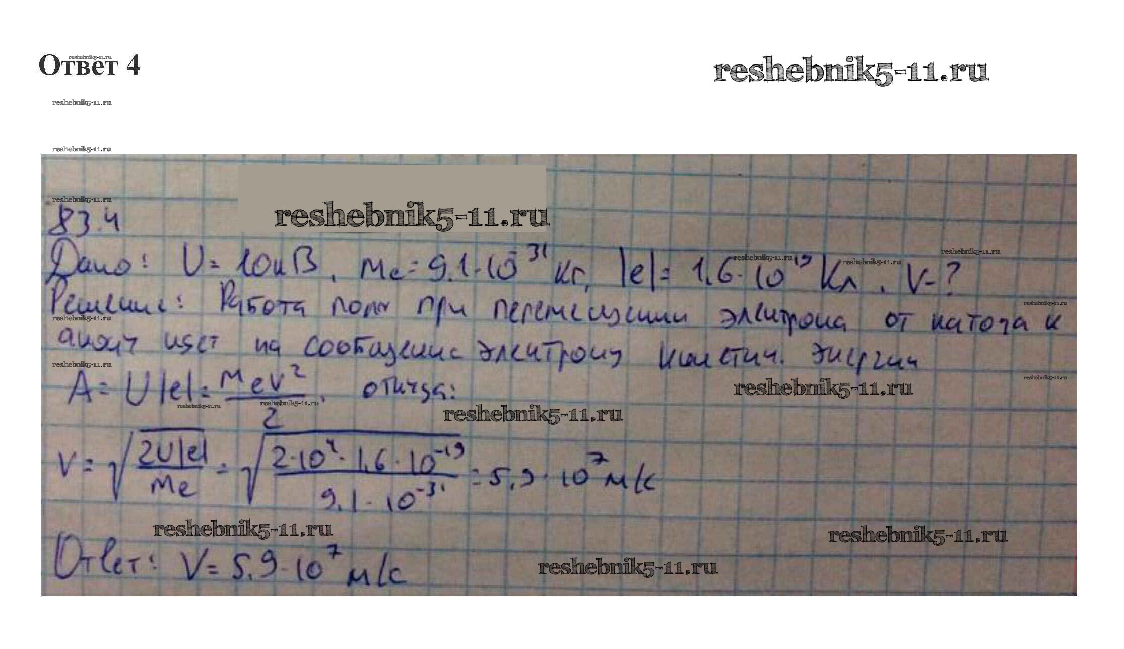 Готовая домашняя работа с ответами по Физике за 10 класс Касьянов Учебник Дрофа 2018 ФГОС - 83. Потенциал электростатического поля 4