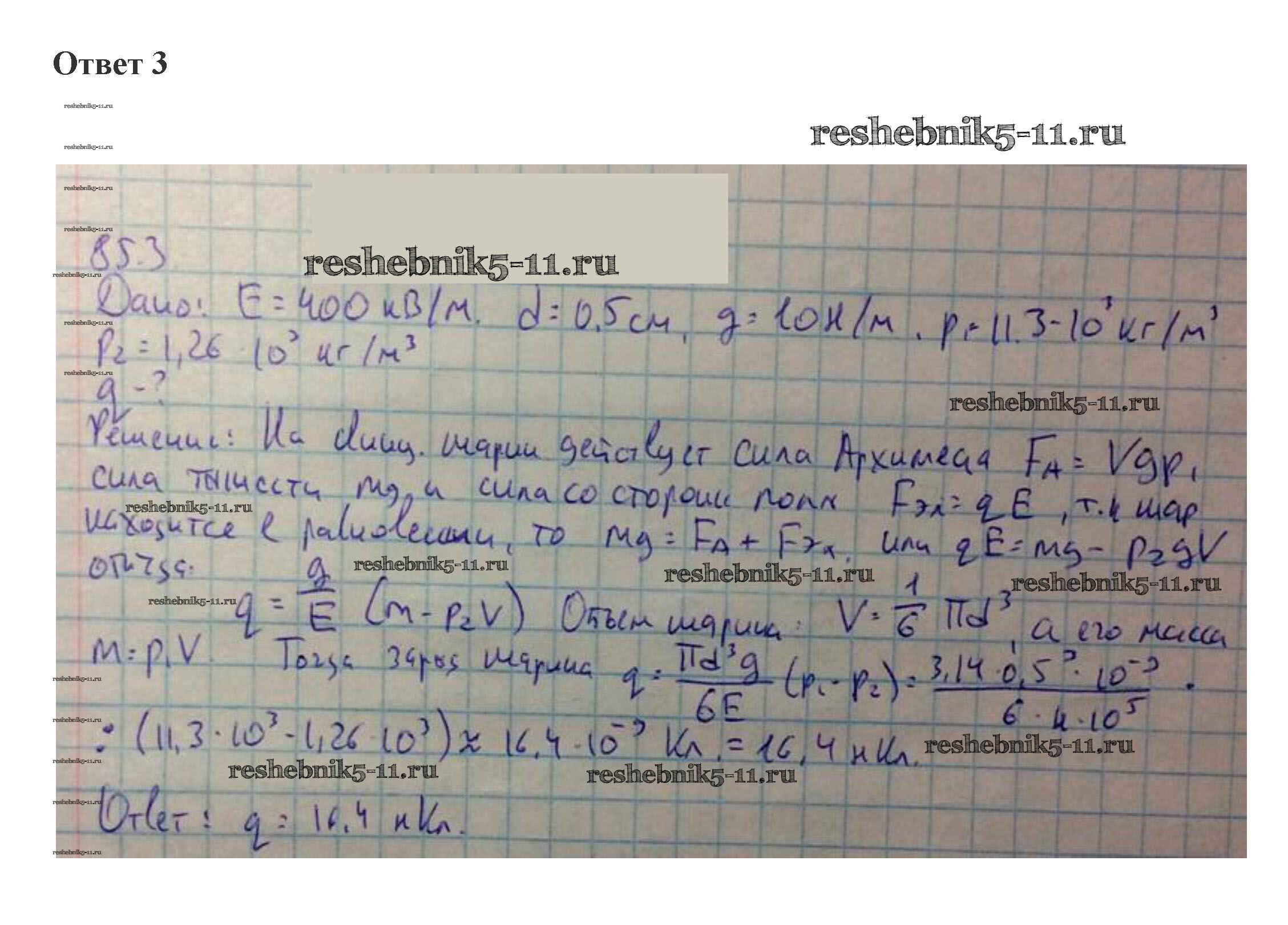 Готовая домашняя работа с ответами по Физике за 10 класс Касьянов Учебник Дрофа 2018 ФГОС - 85. Диэлектрики в электростатическом поле 3