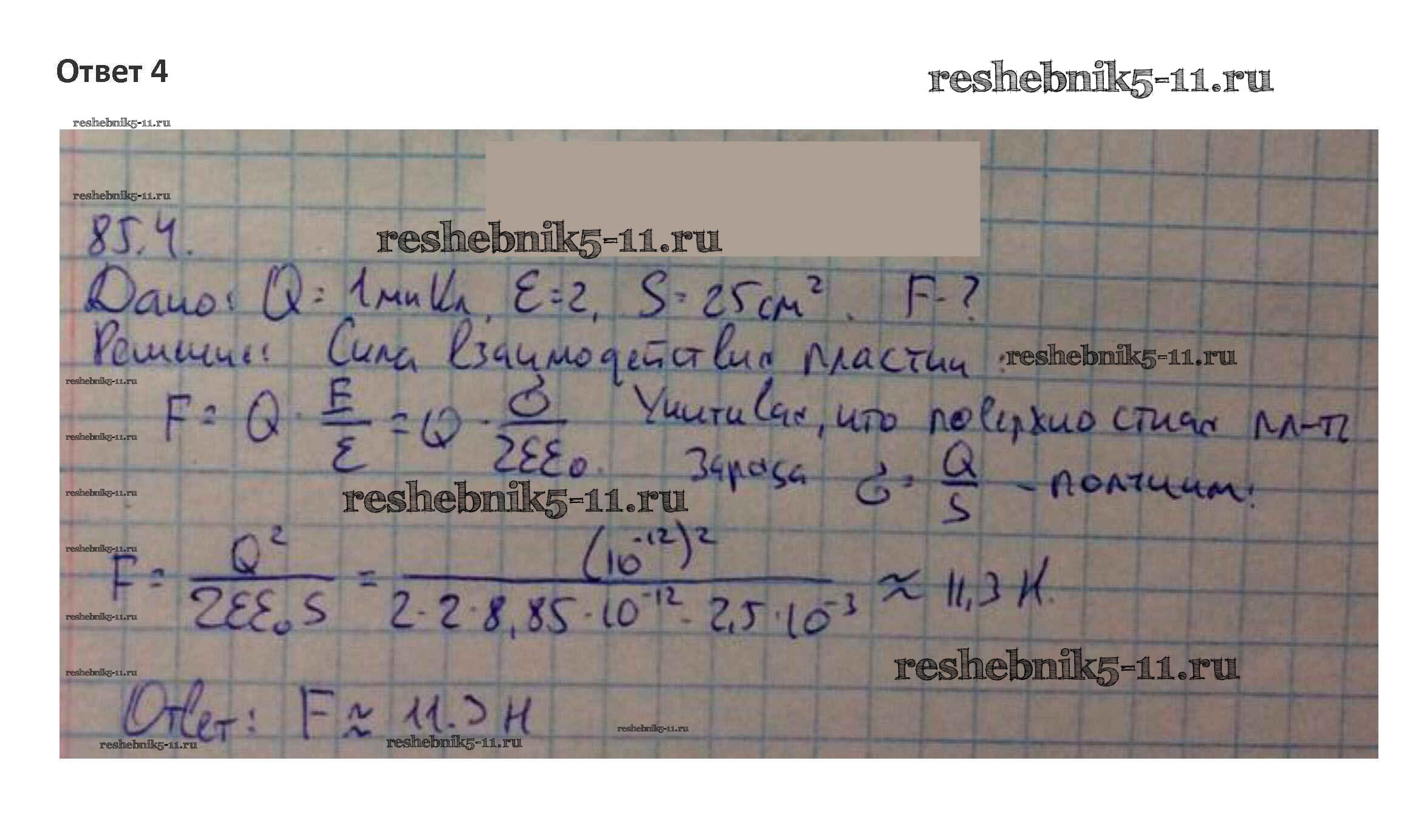Готовая домашняя работа с ответами по Физике за 10 класс Касьянов Учебник Дрофа 2018 ФГОС - 85. Диэлектрики в электростатическом поле 4