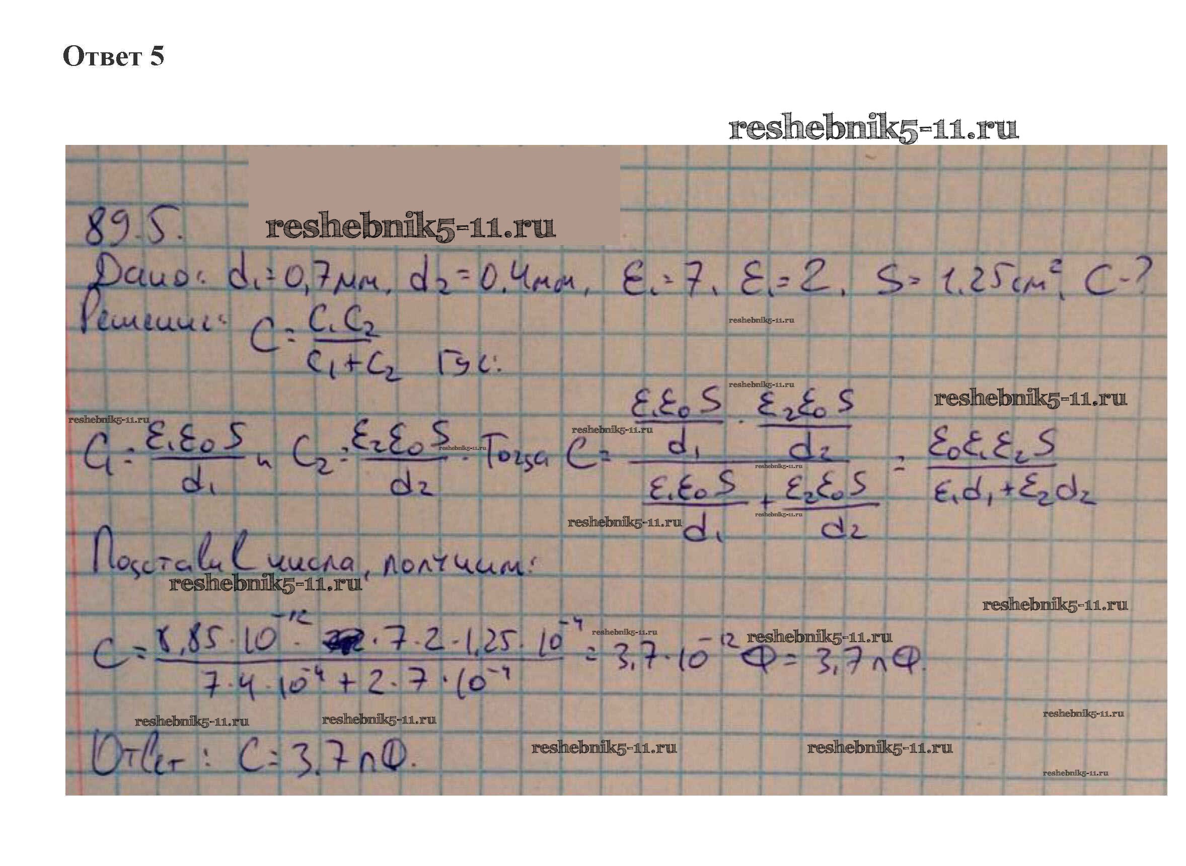 Готовая домашняя работа с ответами по Физике за 10 класс Касьянов Учебник Дрофа 2018 ФГОС - 89. Электроемкость конденсатора 5
