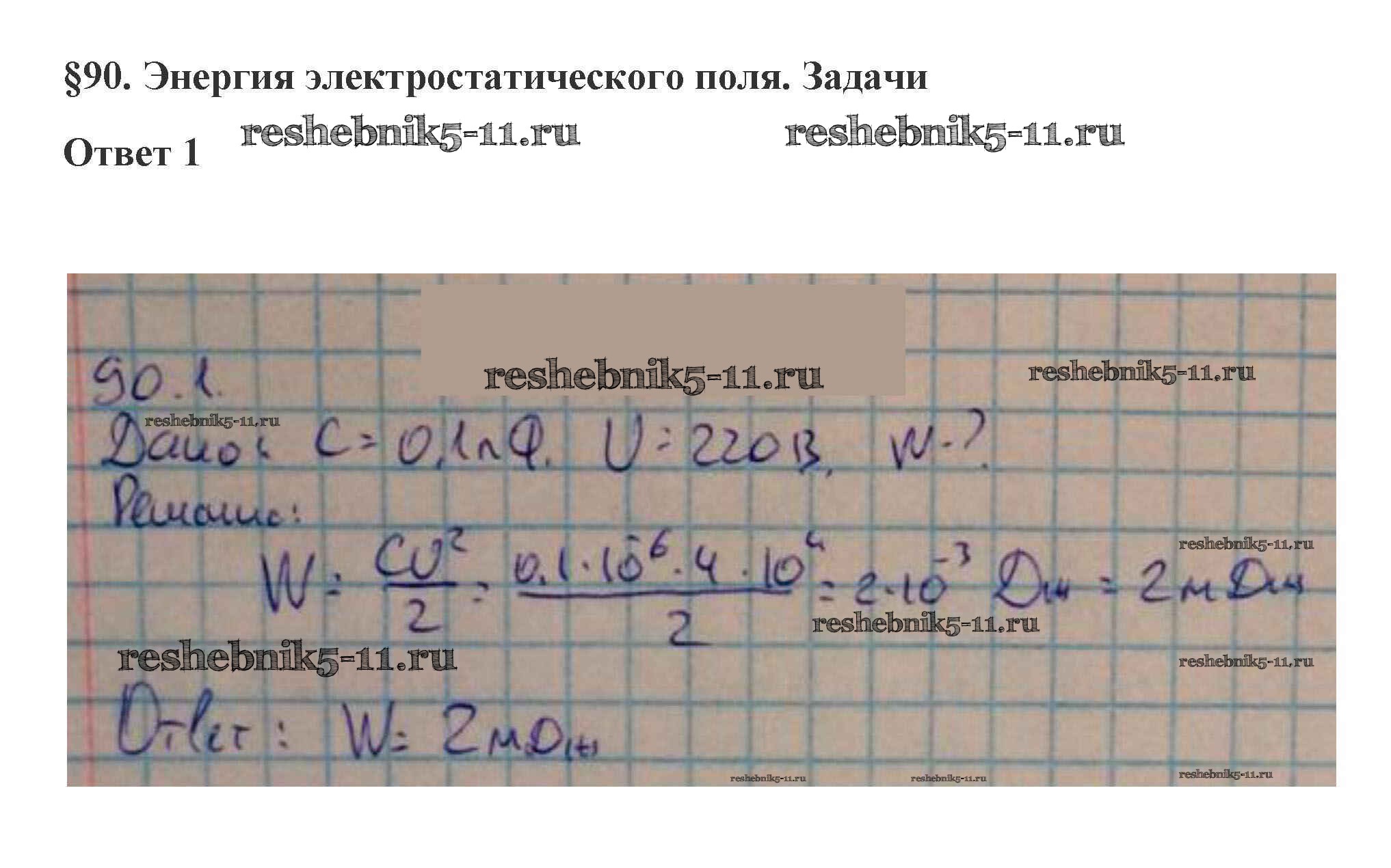 Готовая домашняя работа с ответами по Физике за 10 класс Касьянов Учебник Дрофа 2018 ФГОС - 90. Энергия электростатического поля 1