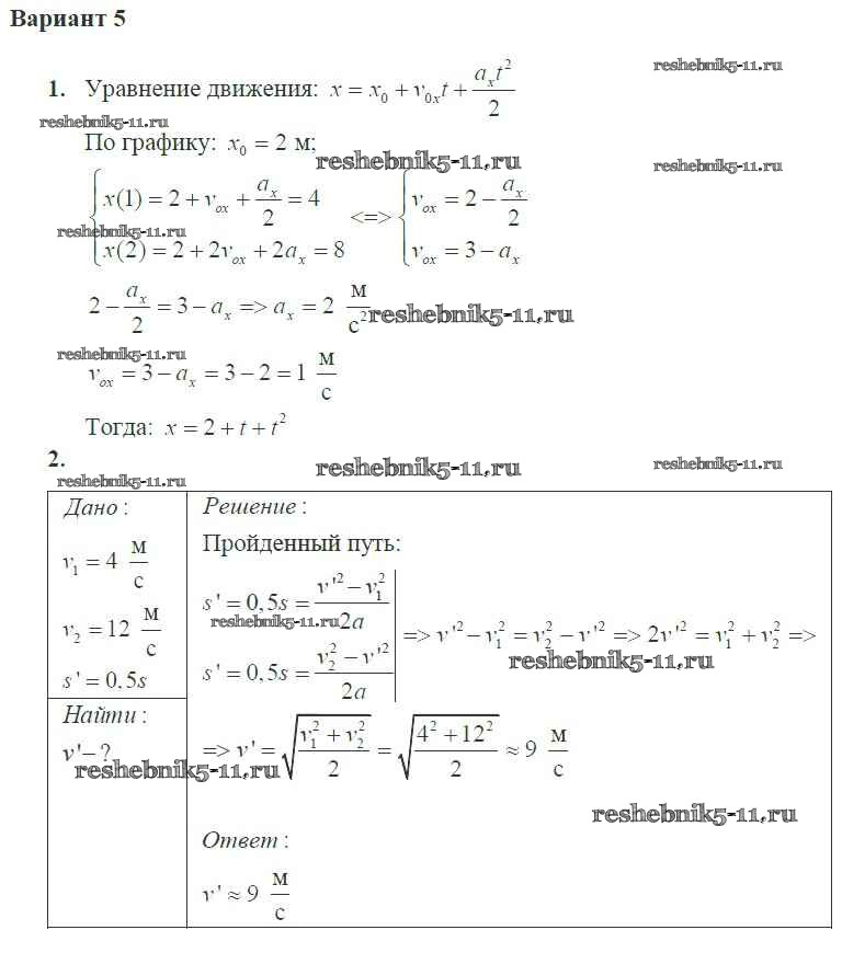 Готовая домашняя работа с ответами по Физике за 10 класс Ерюткин, Ерюткина Самостоятельные и контрольные работы Базовый и углубленный уровень Просвещение 2018 ФГОС - СР №5 5