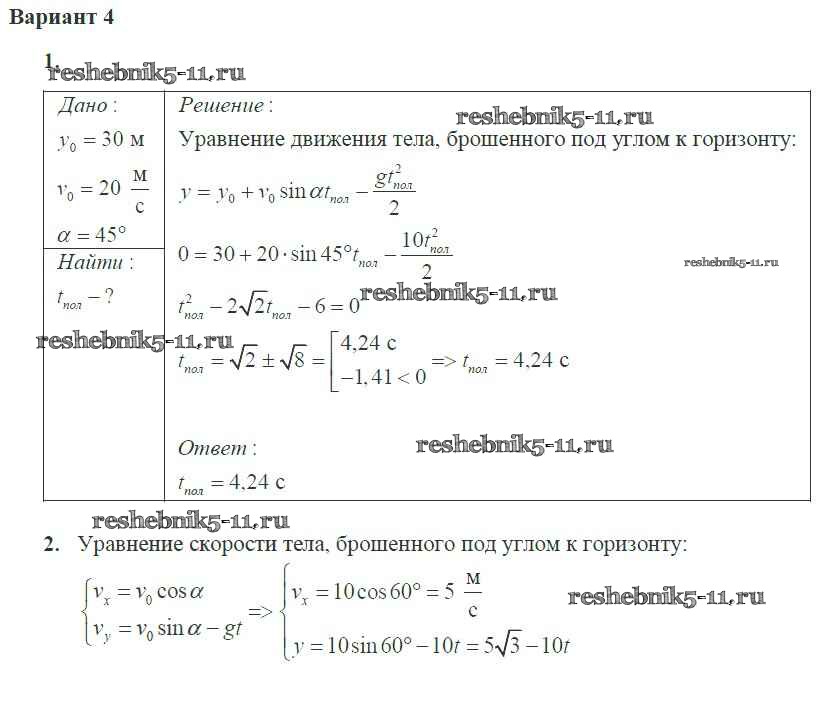 Готовая домашняя работа с ответами по Физике за 10 класс Ерюткин, Ерюткина Самостоятельные и контрольные работы Базовый и углубленный уровень Просвещение 2018 ФГОС - СР №8 4
