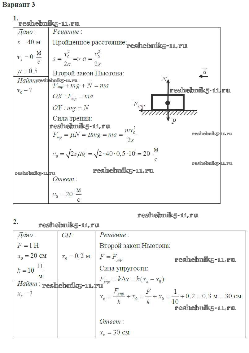 Готовая домашняя работа с ответами по Физике за 10 класс Ерюткин, Ерюткина Самостоятельные и контрольные работы Базовый и углубленный уровень Просвещение 2018 ФГОС - СР №10 3