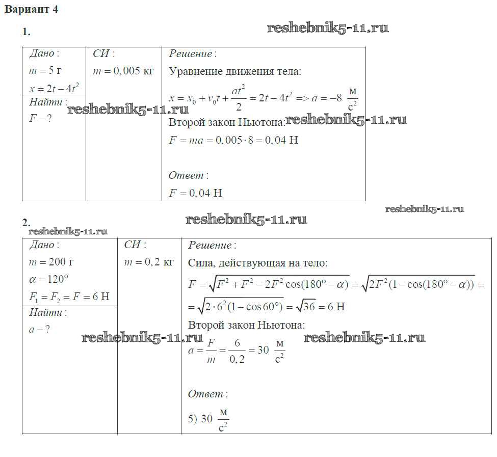 Готовая домашняя работа с ответами по Физике за 10 класс Ерюткин, Ерюткина Самостоятельные и контрольные работы Базовый и углубленный уровень Просвещение 2018 ФГОС - СР №2 4