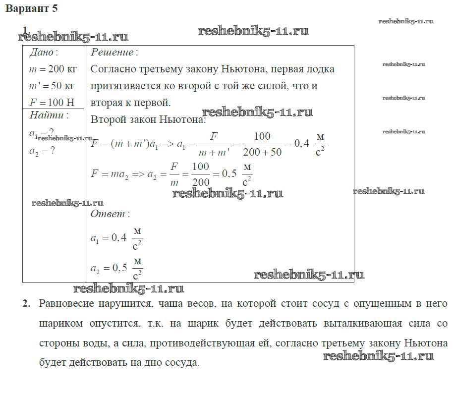 Готовая домашняя работа с ответами по Физике за 10 класс Ерюткин, Ерюткина Самостоятельные и контрольные работы Базовый и углубленный уровень Просвещение 2018 ФГОС - СР №3 5