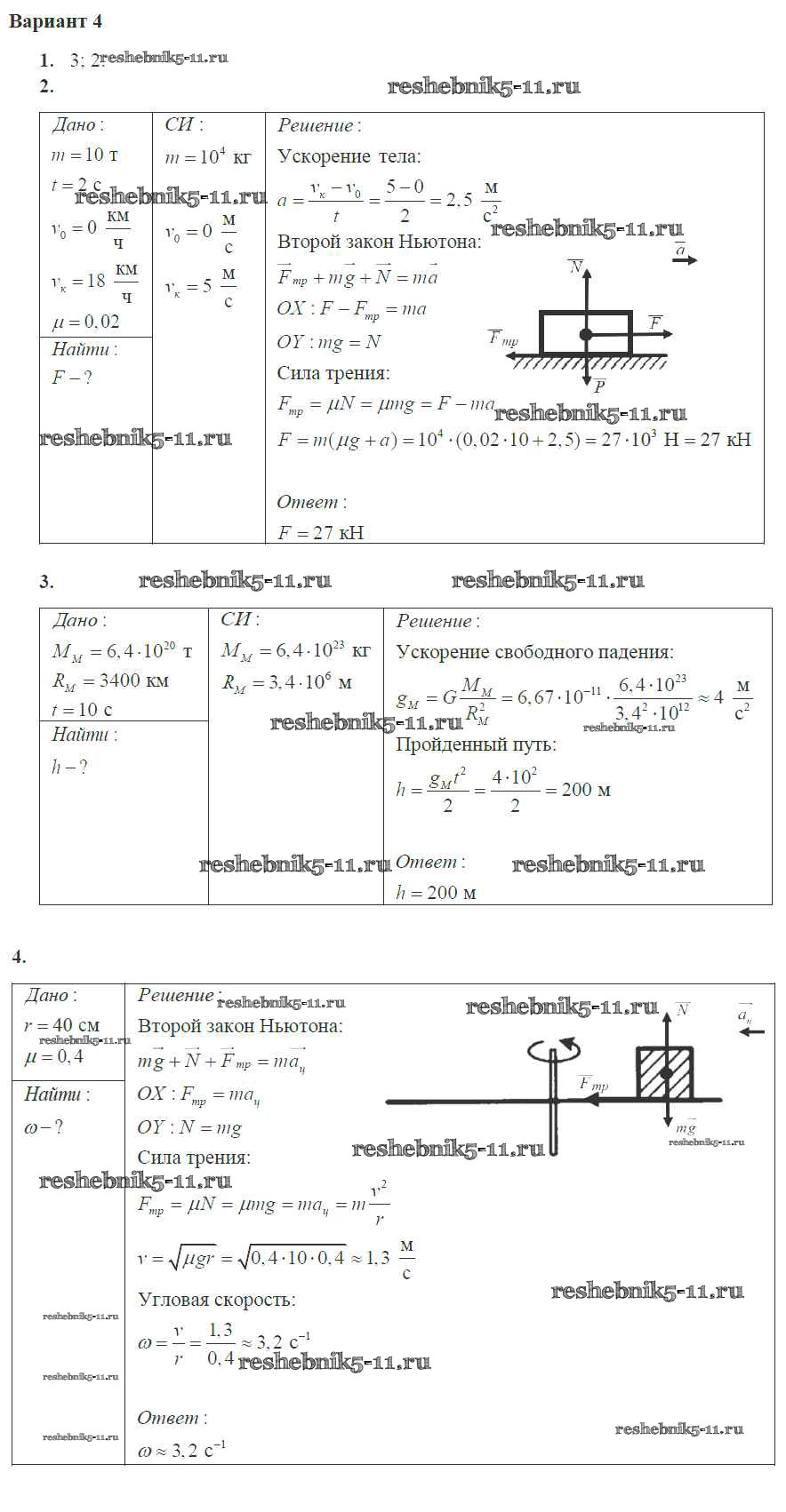 Готовая домашняя работа с ответами по Физике за 10 класс Ерюткин, Ерюткина Самостоятельные и контрольные работы Базовый и углубленный уровень Просвещение 2018 ФГОС - КР 4