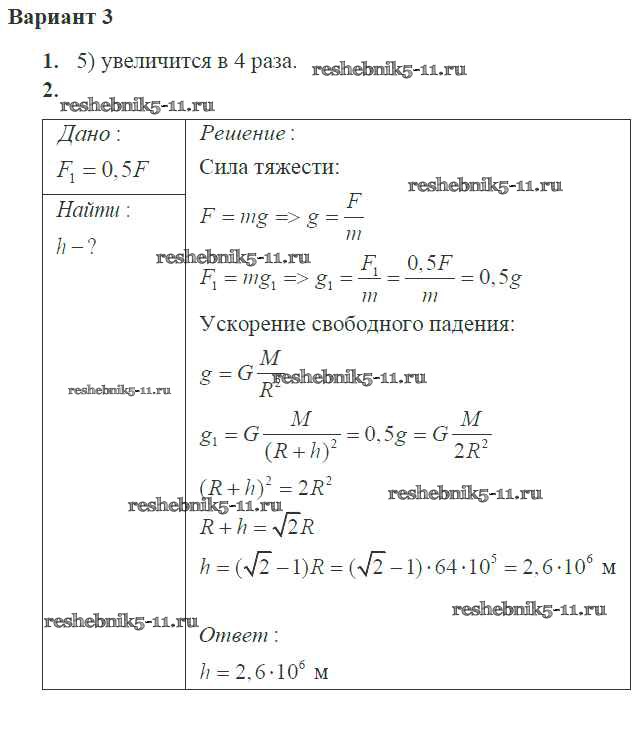 Готовая домашняя работа с ответами по Физике за 10 класс Ерюткин, Ерюткина Самостоятельные и контрольные работы Базовый и углубленный уровень Просвещение 2018 ФГОС - СР №4 3