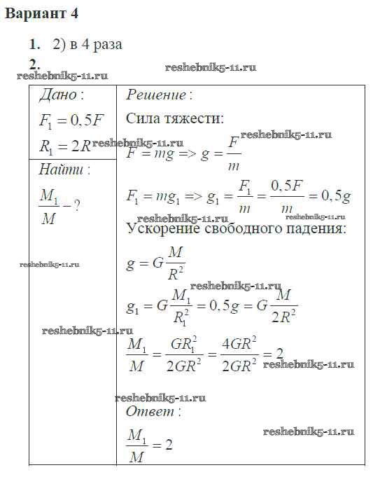 Готовая домашняя работа с ответами по Физике за 10 класс Ерюткин, Ерюткина Самостоятельные и контрольные работы Базовый и углубленный уровень Просвещение 2018 ФГОС - СР №4 4