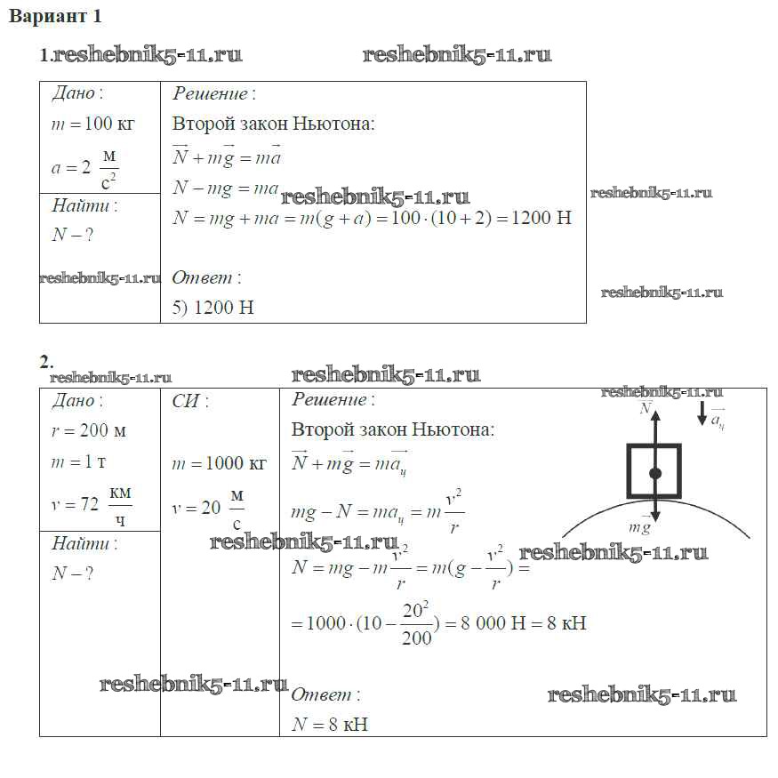 Готовая домашняя работа с ответами по Физике за 10 класс Ерюткин, Ерюткина Самостоятельные и контрольные работы Базовый и углубленный уровень Просвещение 2018 ФГОС - СР №6 1