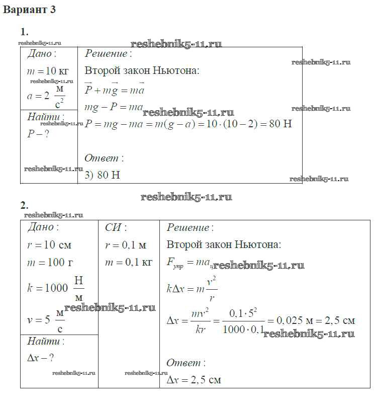 Готовая домашняя работа с ответами по Физике за 10 класс Ерюткин, Ерюткина Самостоятельные и контрольные работы Базовый и углубленный уровень Просвещение 2018 ФГОС - СР №6 3