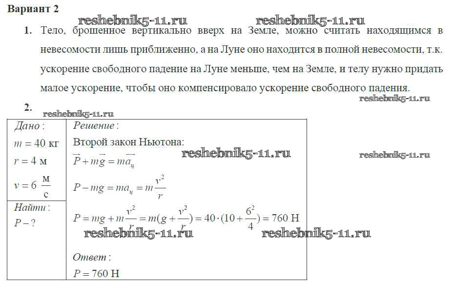 Готовая домашняя работа с ответами по Физике за 10 класс Ерюткин, Ерюткина Самостоятельные и контрольные работы Базовый и углубленный уровень Просвещение 2018 ФГОС - СР №7 2