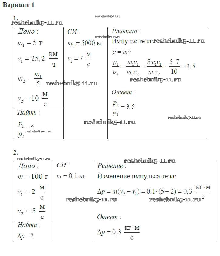Решебник 1 / законы сохранения в механике / ср №1 / 1