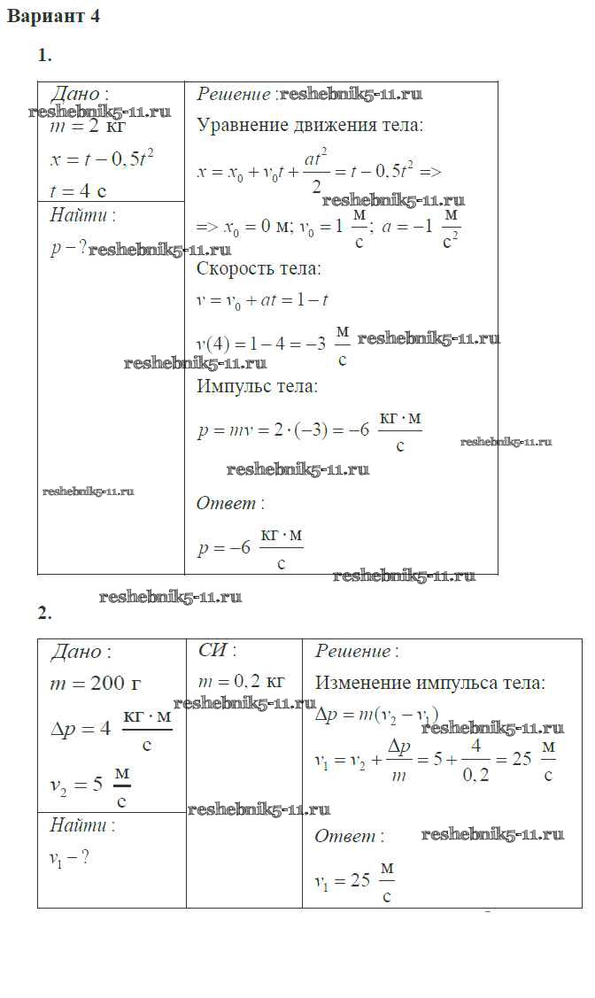 Готовая домашняя работа с ответами по Физике за 10 класс Ерюткин, Ерюткина Самостоятельные и контрольные работы Базовый и углубленный уровень Просвещение 2018 ФГОС - СР №1 4