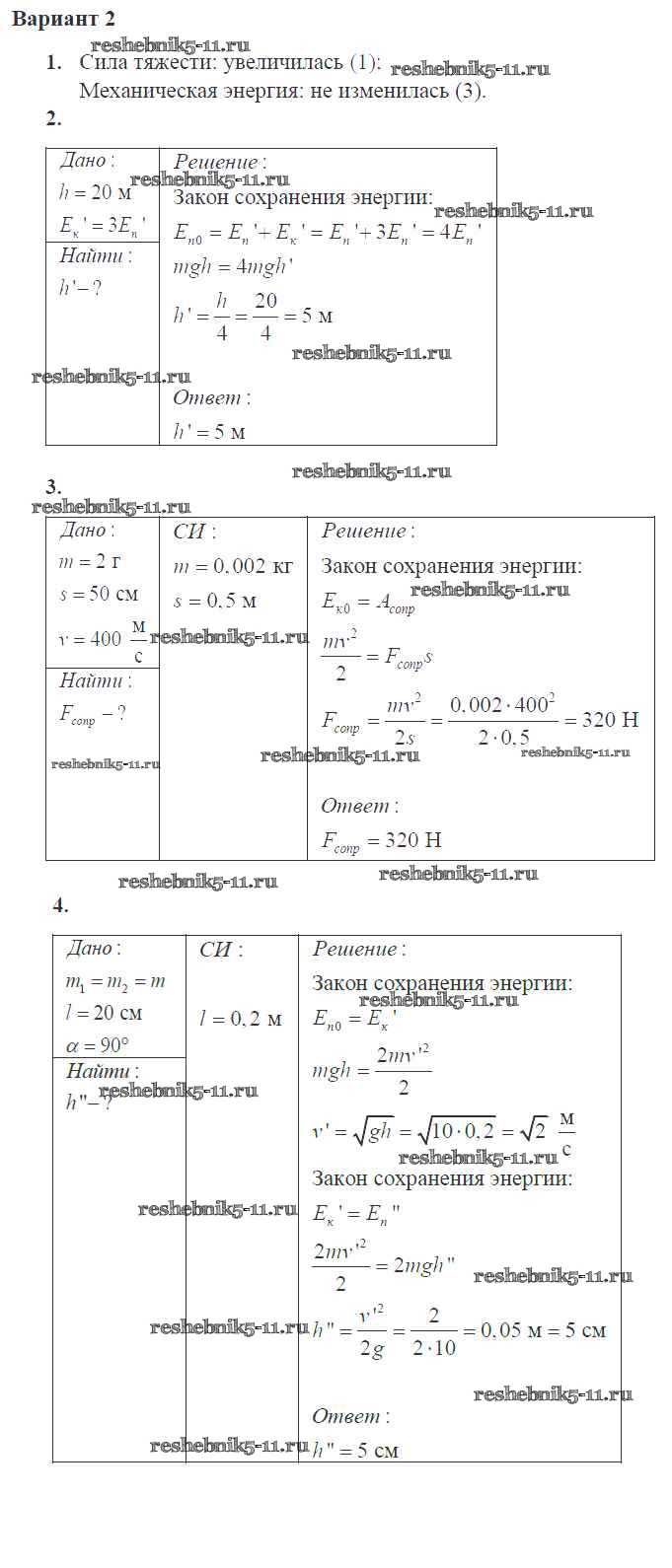 Готовая домашняя работа с ответами по Физике за 10 класс Ерюткин, Ерюткина Самостоятельные и контрольные работы Базовый и углубленный уровень Просвещение 2018 ФГОС - КР 2