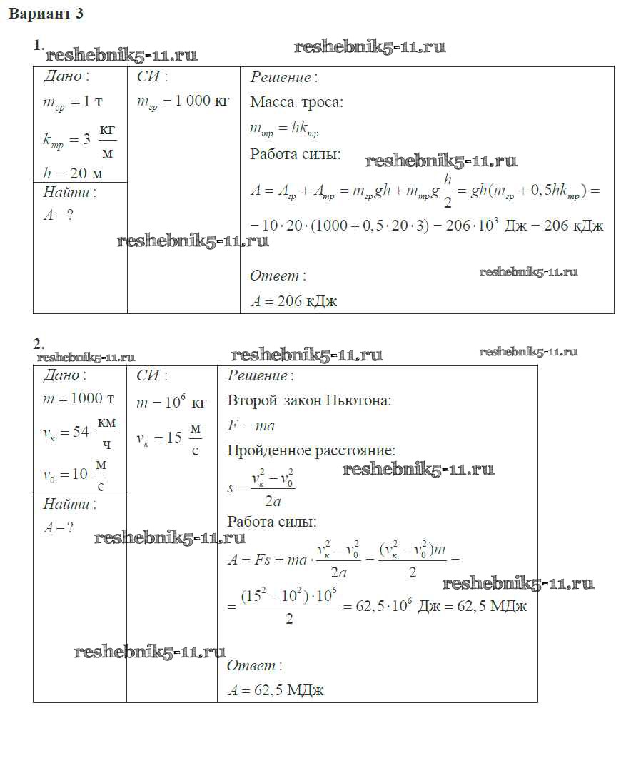 Готовая домашняя работа с ответами по Физике за 10 класс Ерюткин, Ерюткина Самостоятельные и контрольные работы Базовый и углубленный уровень Просвещение 2018 ФГОС - СР №4 3