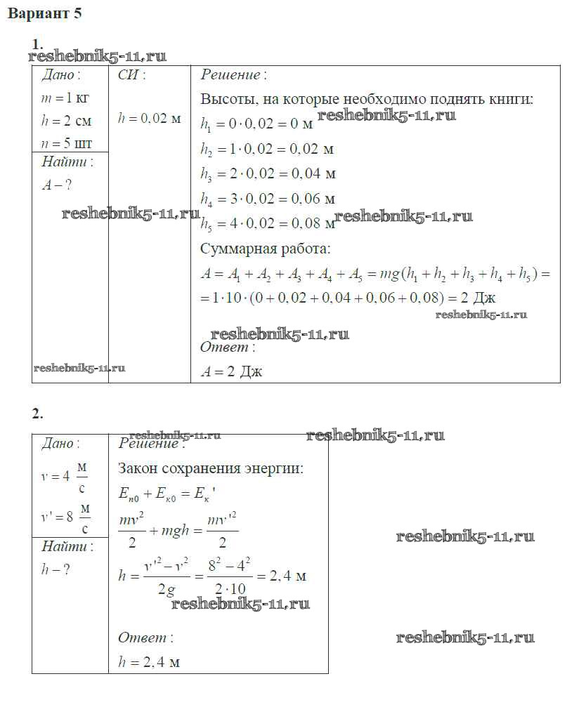 Готовая домашняя работа с ответами по Физике за 10 класс Ерюткин, Ерюткина Самостоятельные и контрольные работы Базовый и углубленный уровень Просвещение 2018 ФГОС - СР №6 5