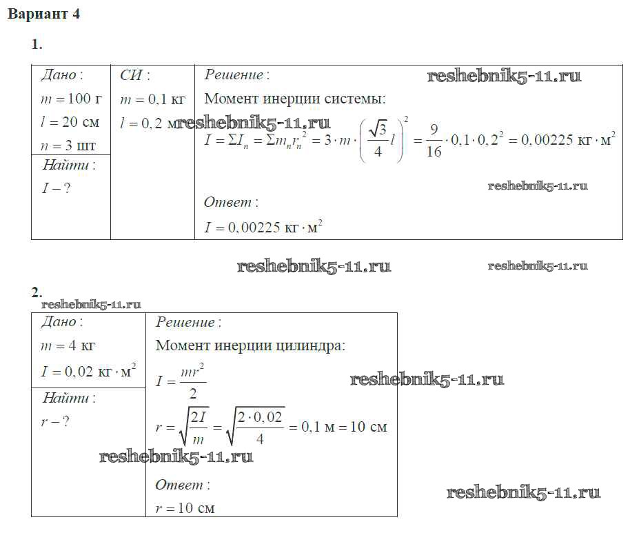 Готовая домашняя работа с ответами по Физике за 10 класс Ерюткин, Ерюткина Самостоятельные и контрольные работы Базовый и углубленный уровень Просвещение 2018 ФГОС - СР №7 4