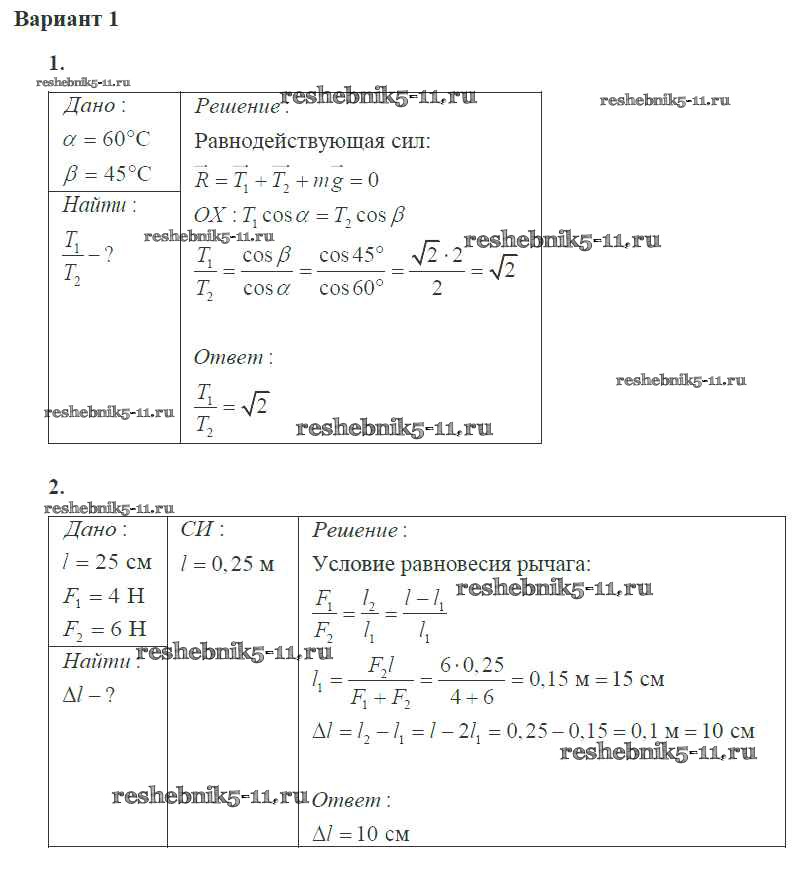 Готовая домашняя работа с ответами по Физике за 10 класс Ерюткин, Ерюткина Самостоятельные и контрольные работы Базовый и углубленный уровень Просвещение 2018 ФГОС - СР №1 1