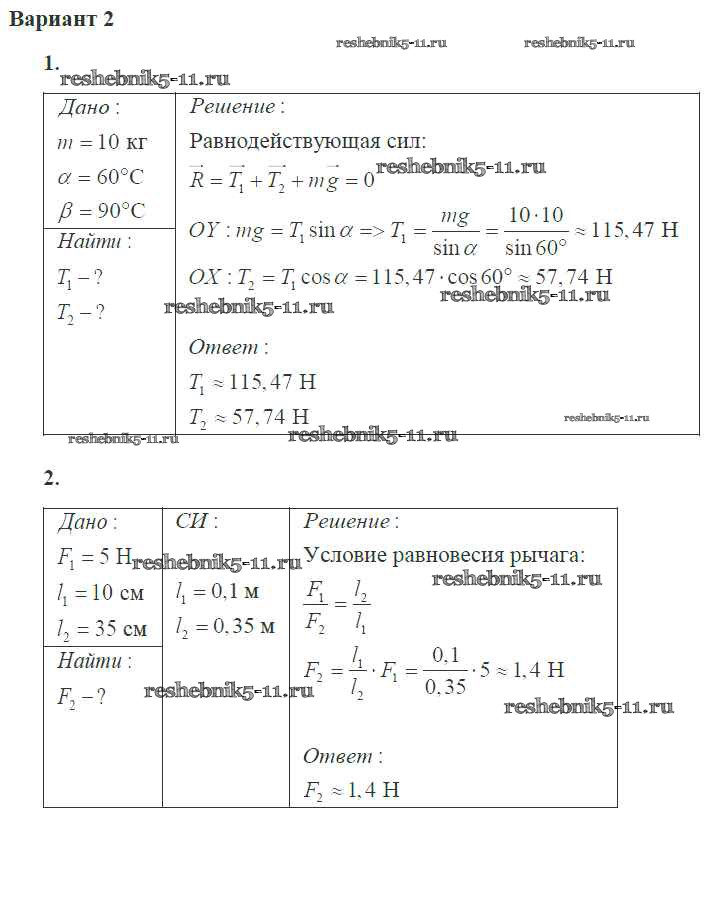 Готовая домашняя работа с ответами по Физике за 10 класс Ерюткин, Ерюткина Самостоятельные и контрольные работы Базовый и углубленный уровень Просвещение 2018 ФГОС - СР №1 2