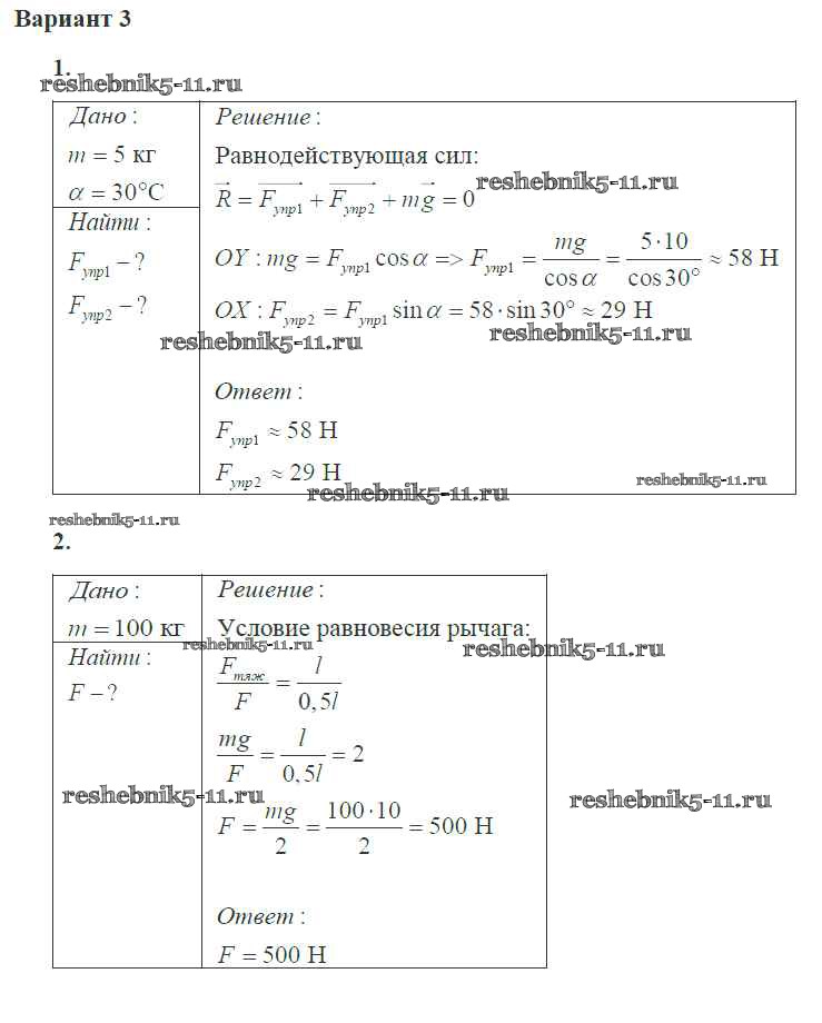Готовая домашняя работа с ответами по Физике за 10 класс Ерюткин, Ерюткина Самостоятельные и контрольные работы Базовый и углубленный уровень Просвещение 2018 ФГОС - СР №1 3