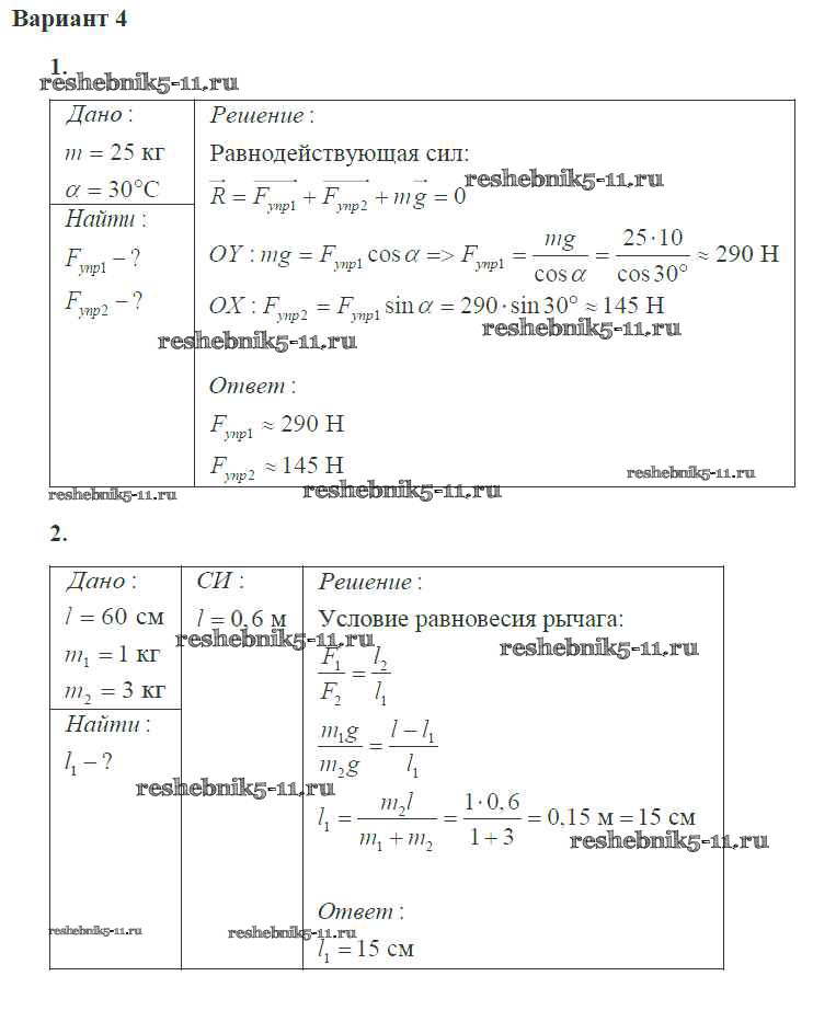 Готовая домашняя работа с ответами по Физике за 10 класс Ерюткин, Ерюткина Самостоятельные и контрольные работы Базовый и углубленный уровень Просвещение 2018 ФГОС - СР №1 4