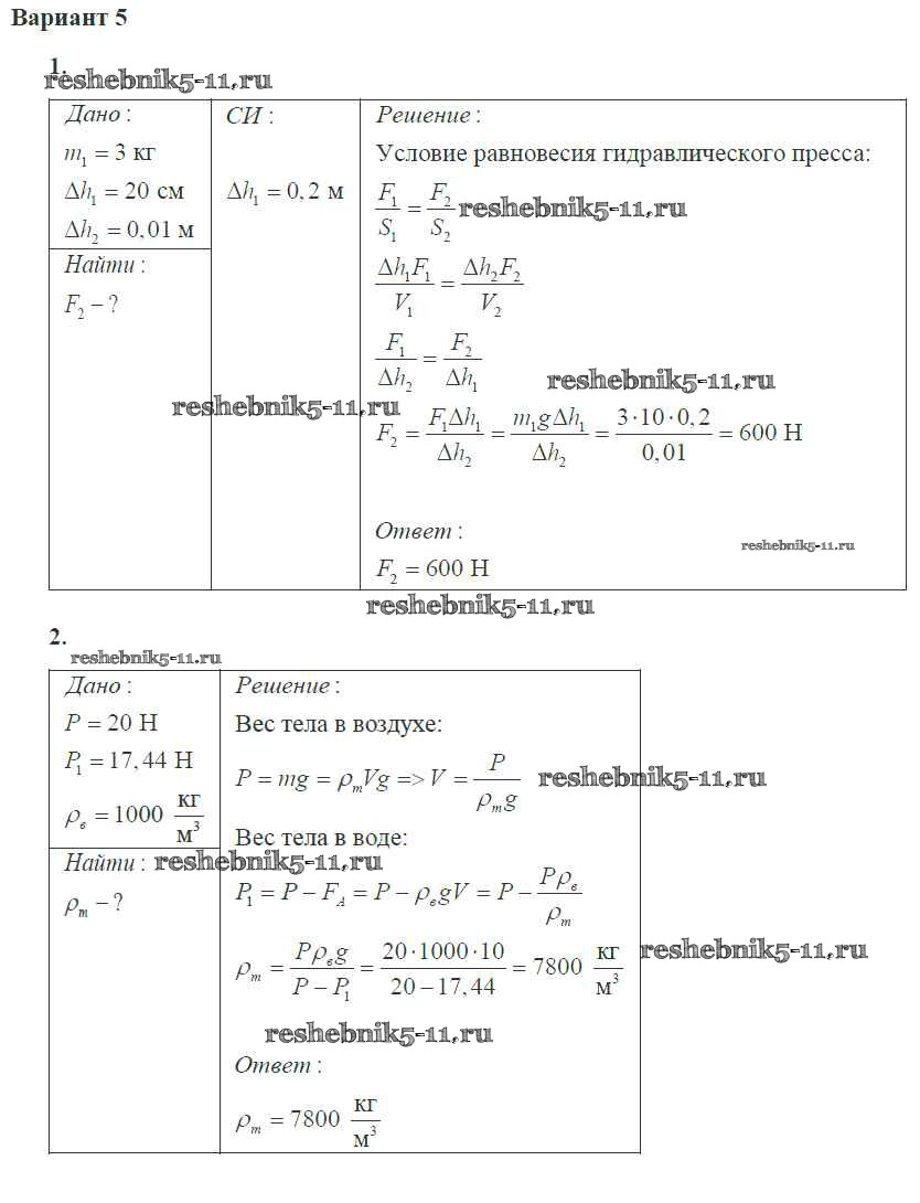Готовая домашняя работа с ответами по Физике за 10 класс Ерюткин, Ерюткина Самостоятельные и контрольные работы Базовый и углубленный уровень Просвещение 2018 ФГОС - СР №2 5
