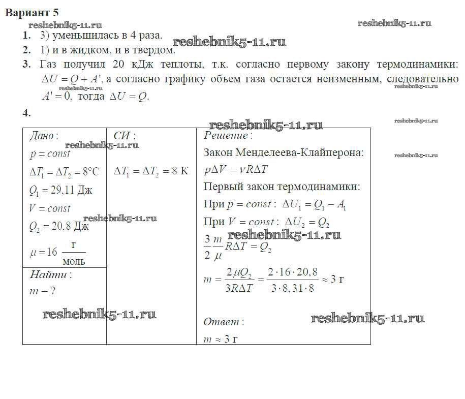 Готовая домашняя работа с ответами по Физике за 10 класс Ерюткин, Ерюткина Самостоятельные и контрольные работы Базовый и углубленный уровень Просвещение 2018 ФГОС - КР 5