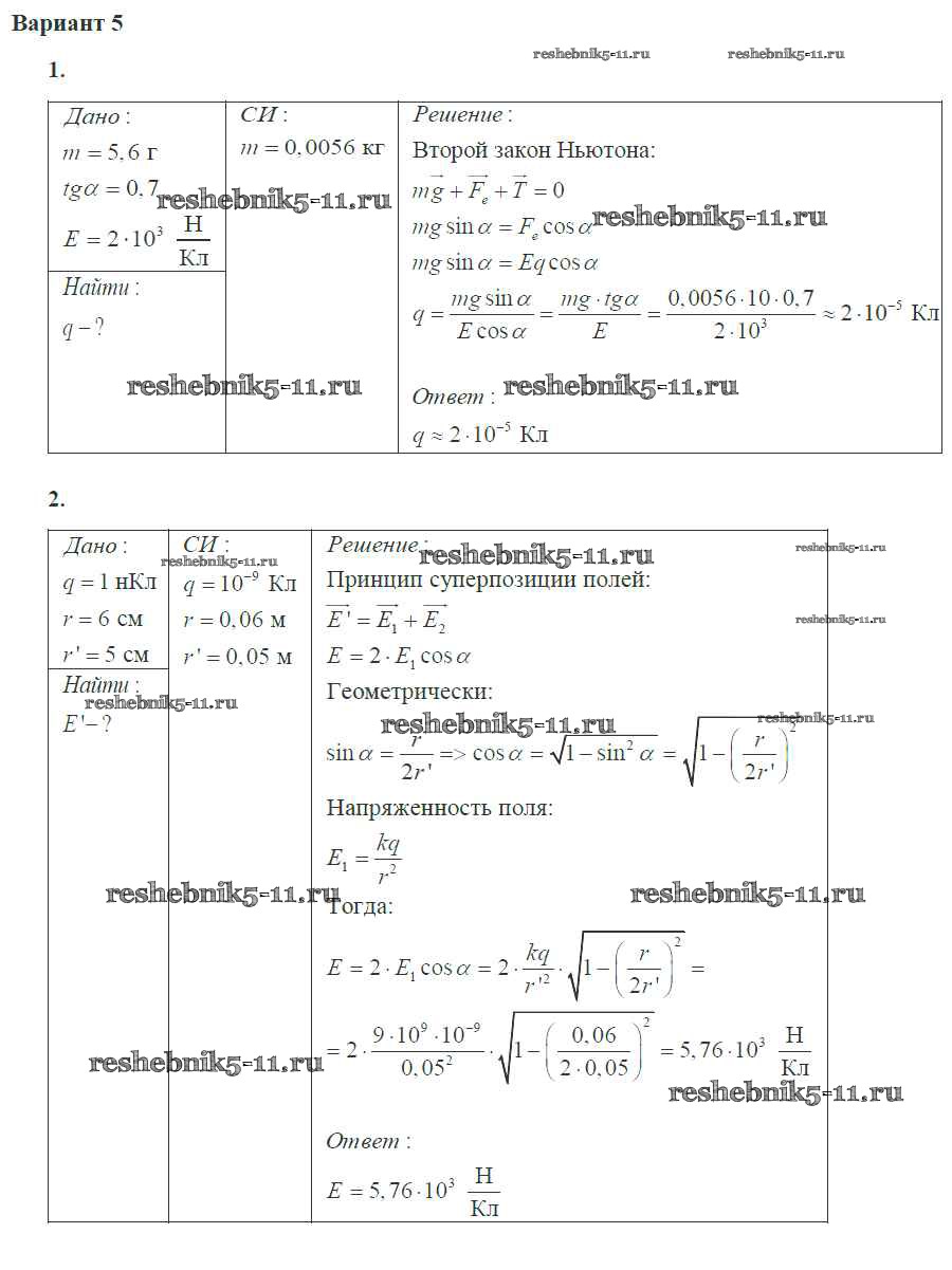 Готовая домашняя работа с ответами по Физике за 10 класс Ерюткин, Ерюткина Самостоятельные и контрольные работы Базовый и углубленный уровень Просвещение 2018 ФГОС - СР №2 5