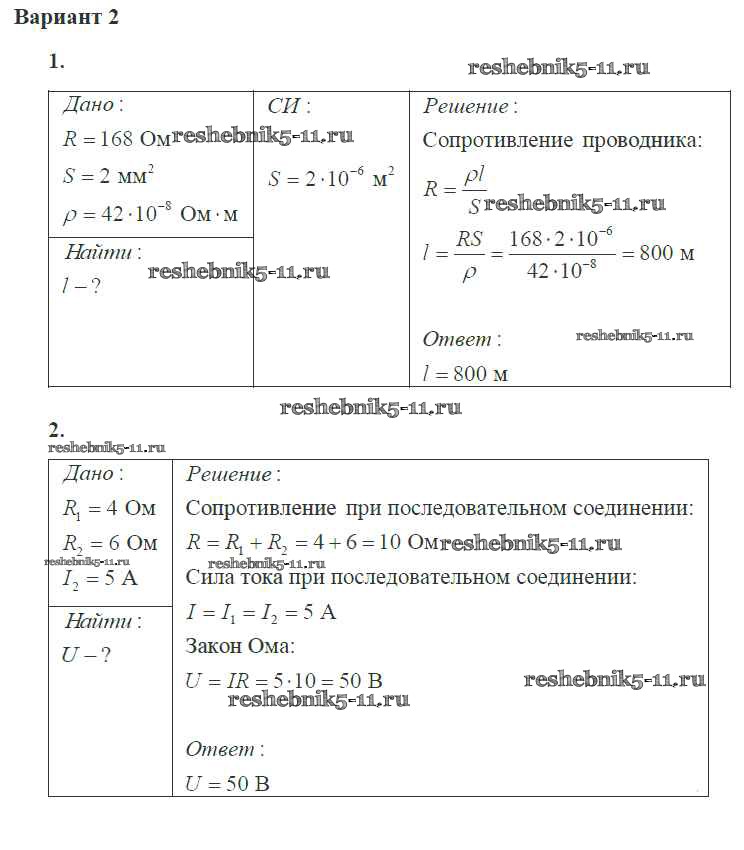 Решебник 1 / постоянный электрический ток / ср №2 / 2