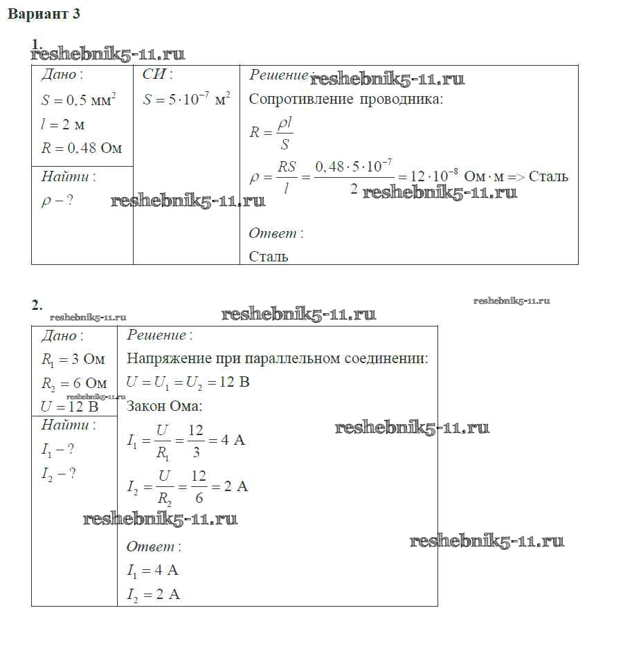 Решебник 1 / постоянный электрический ток / ср №2 / 3