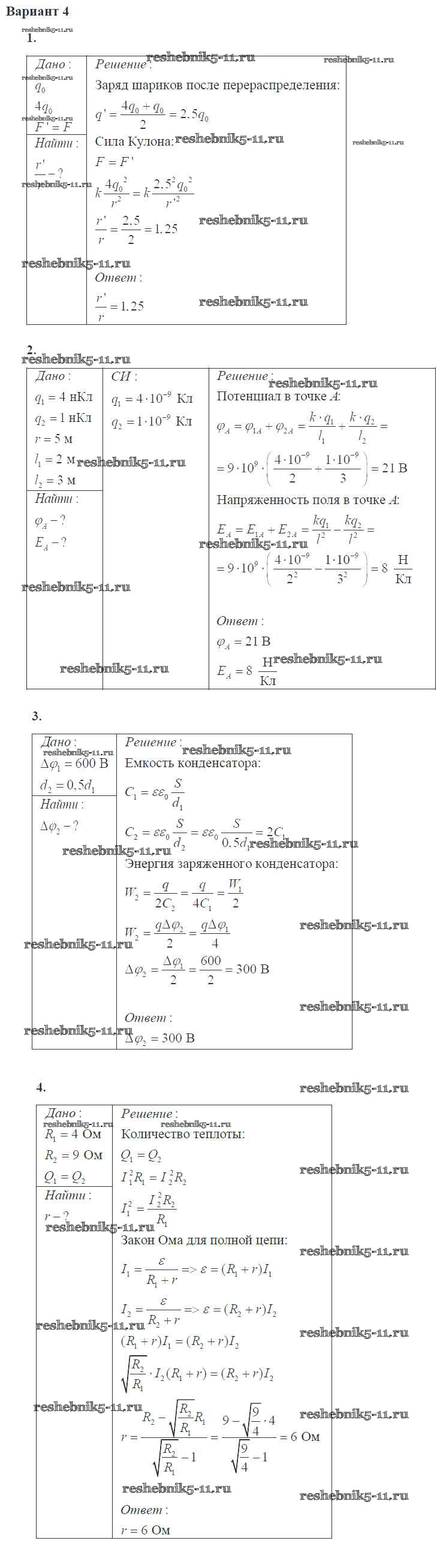 Решебник 2 / постоянный электрический ток / КР / 4