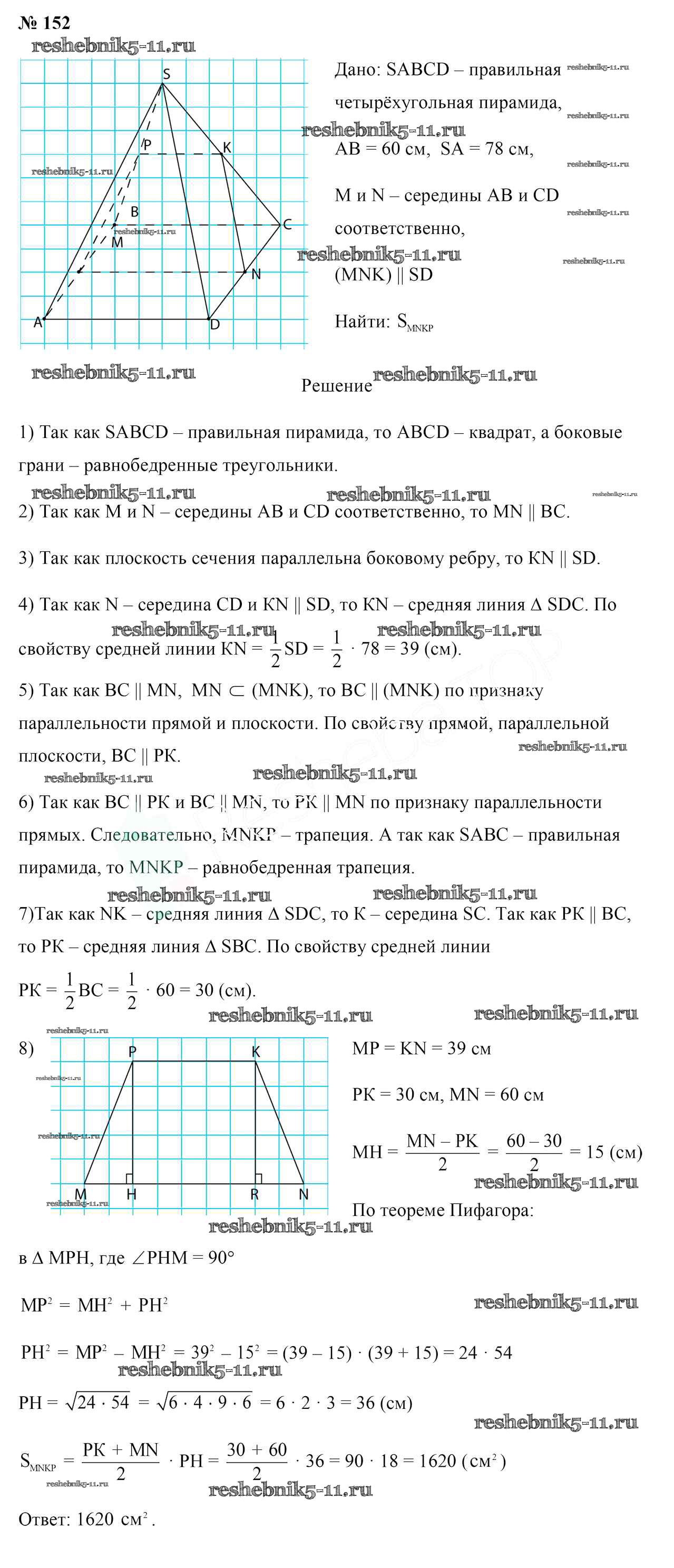 Готовая домашняя работа с ответами по Геометрии за 10 класс Латотин, Чеботаревский, Горбунова Учебник Народная асвета 2020 - Задачи 152