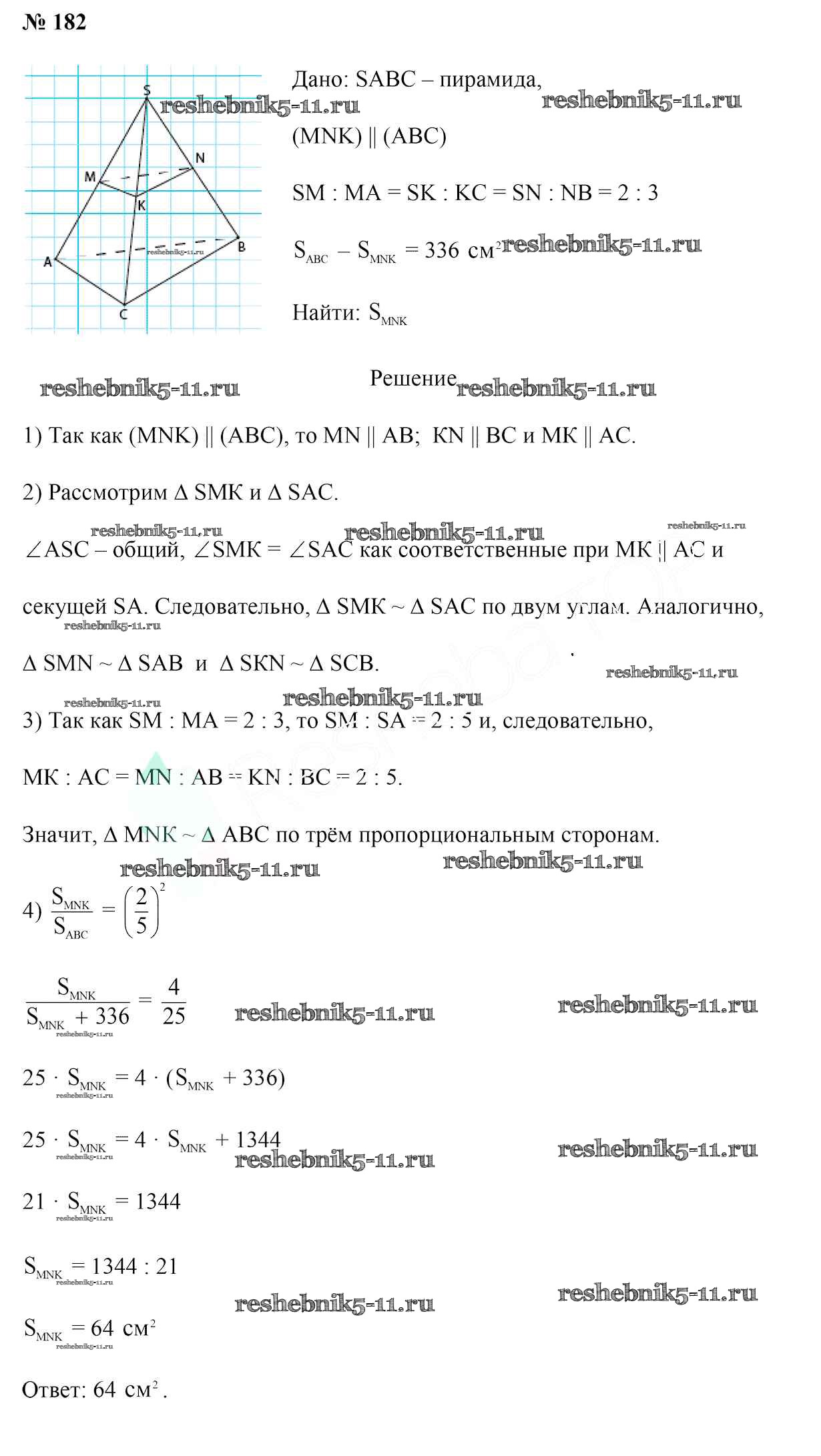 Готовая домашняя работа с ответами по Геометрии за 10 класс Латотин, Чеботаревский, Горбунова Учебник Народная асвета 2020 - Задачи 182