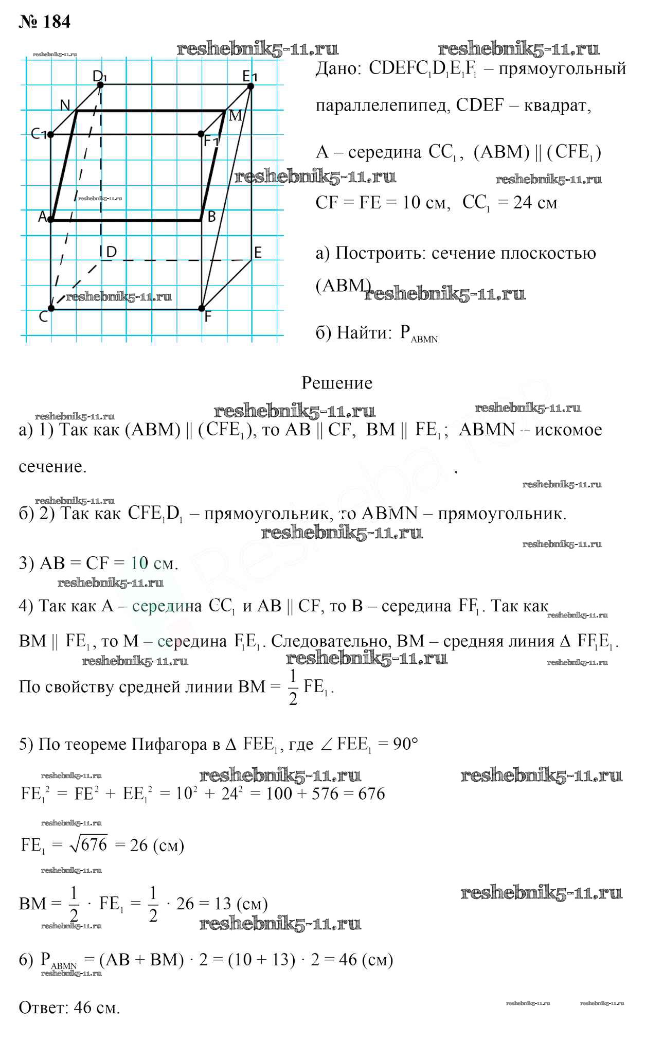 Готовая домашняя работа с ответами по Геометрии за 10 класс Латотин, Чеботаревский, Горбунова Учебник Народная асвета 2020 - Задачи 184