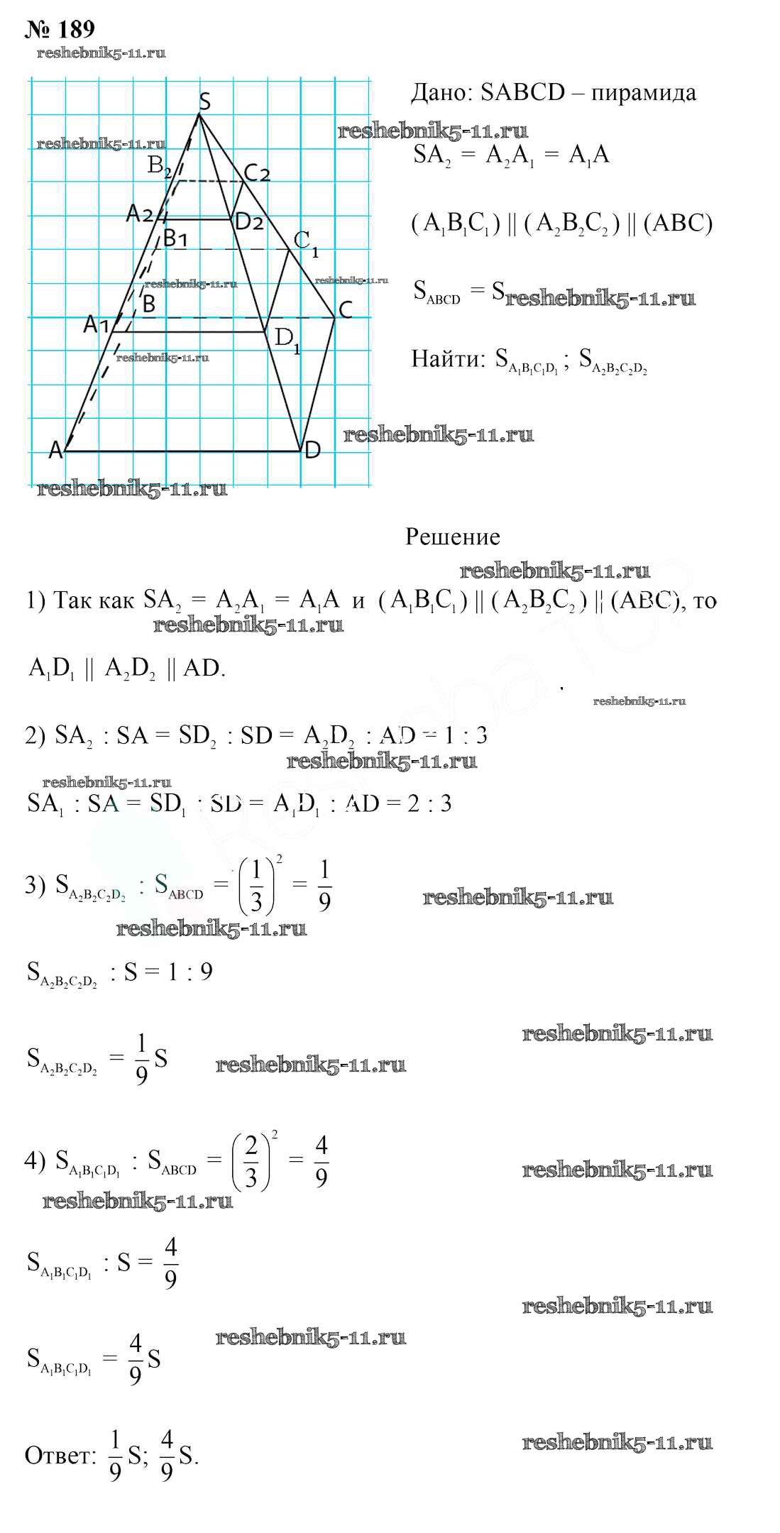 Готовая домашняя работа с ответами по Геометрии за 10 класс Латотин, Чеботаревский, Горбунова Учебник Народная асвета 2020 - Задачи 189