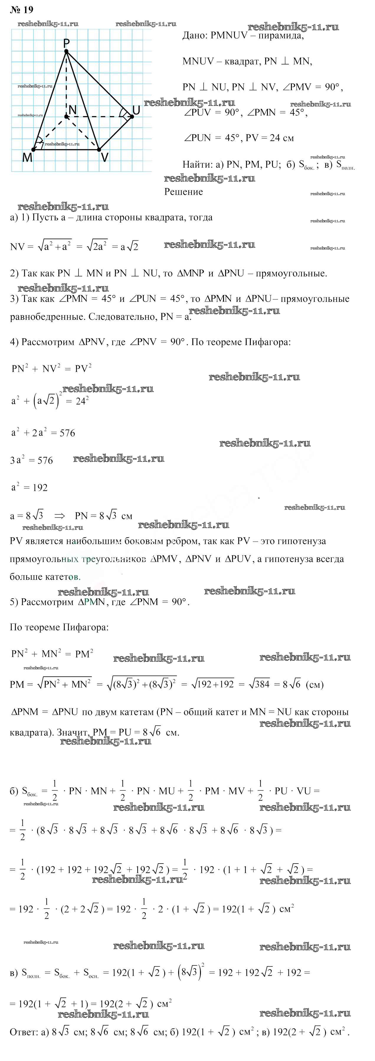 Готовая домашняя работа с ответами по Геометрии за 10 класс Латотин, Чеботаревский, Горбунова Учебник Народная асвета 2020 - Задачи 19