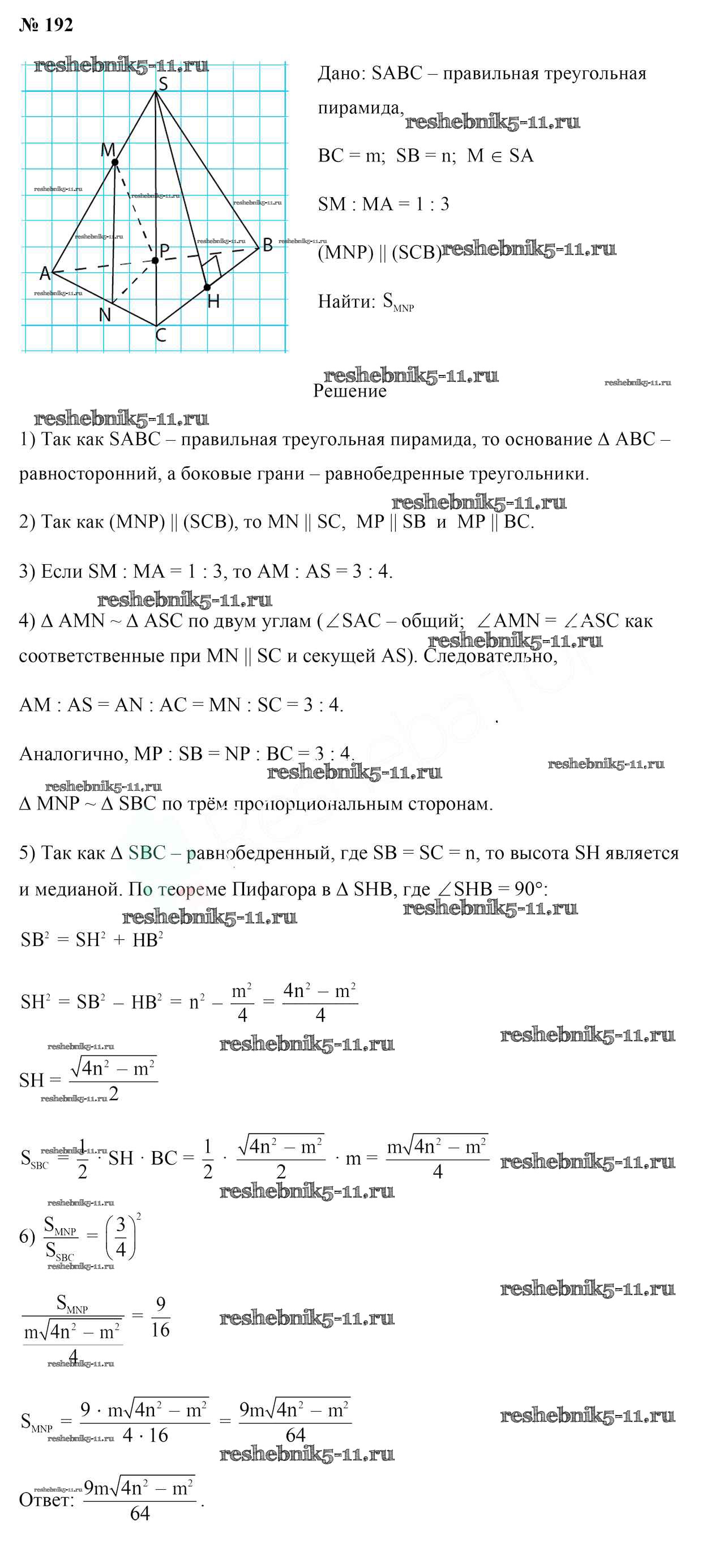 Готовая домашняя работа с ответами по Геометрии за 10 класс Латотин, Чеботаревский, Горбунова Учебник Народная асвета 2020 - Задачи 192