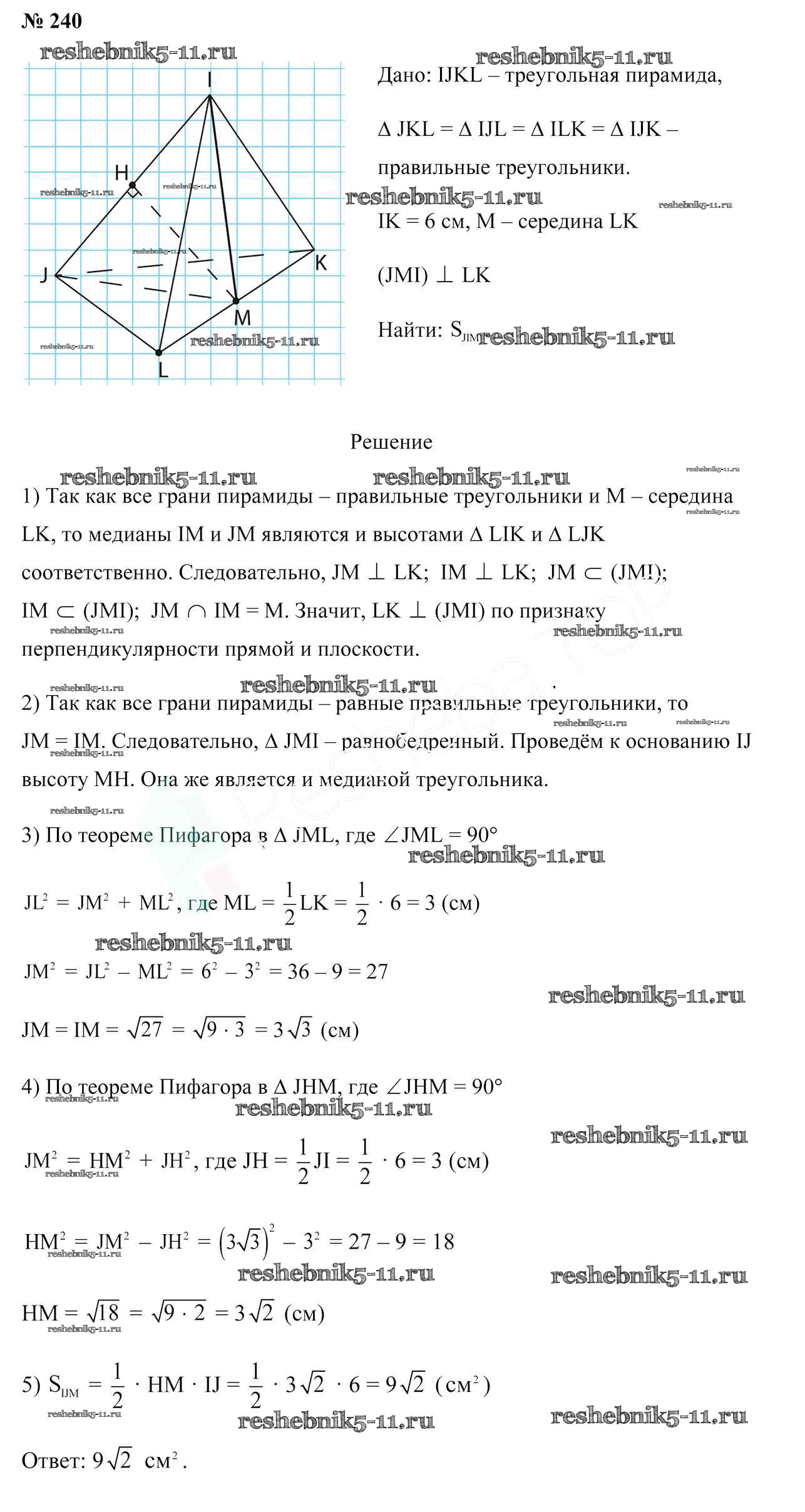 Готовая домашняя работа с ответами по Геометрии за 10 класс Латотин, Чеботаревский, Горбунова Учебник Народная асвета 2020 - Задачи 240