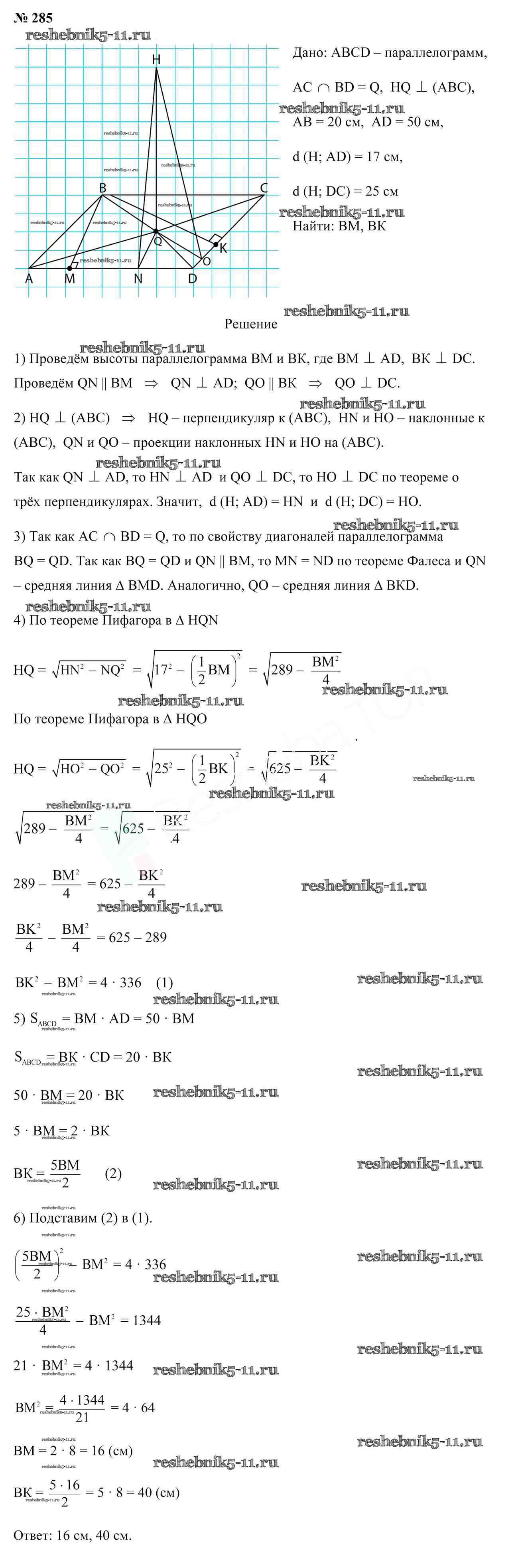 Готовая домашняя работа с ответами по Геометрии за 10 класс Латотин, Чеботаревский, Горбунова Учебник Народная асвета 2020 - Задачи 285